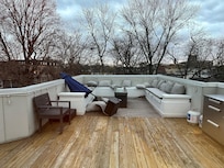 • Savor moments on a vast rooftop deck, complete with an outdoor kitchen, overlooking the city skyline