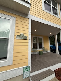 Exceptional 8 bed property in Cason Park area. Sleeps 20. Main level has a large open plan kitchen (fully stocked for all your cooking needs) with 2 dining tables seating 16 and breakfast bar seating 4, living room with TV and gas fireplace. There is an outdoor fire pit to the rear. Parking for 6 cars. Rear screened porch with dining table and seating area. (please note golf cart not available due to weather between Oct-April). The beach and pool are a short stroll (5 min walk or less in golf cart). Beach chairs, beach toys, wagon and a roller cooler available for your convenience. Beachwalk amenities include communal pool with splashpad, two fishing piers, basketball court, tennis court (also striped for pickle ball), bocce court, shuffle board, putting green and new playground, kayaks, pedal boats and paddle boards and yoga weekly during the Summer.