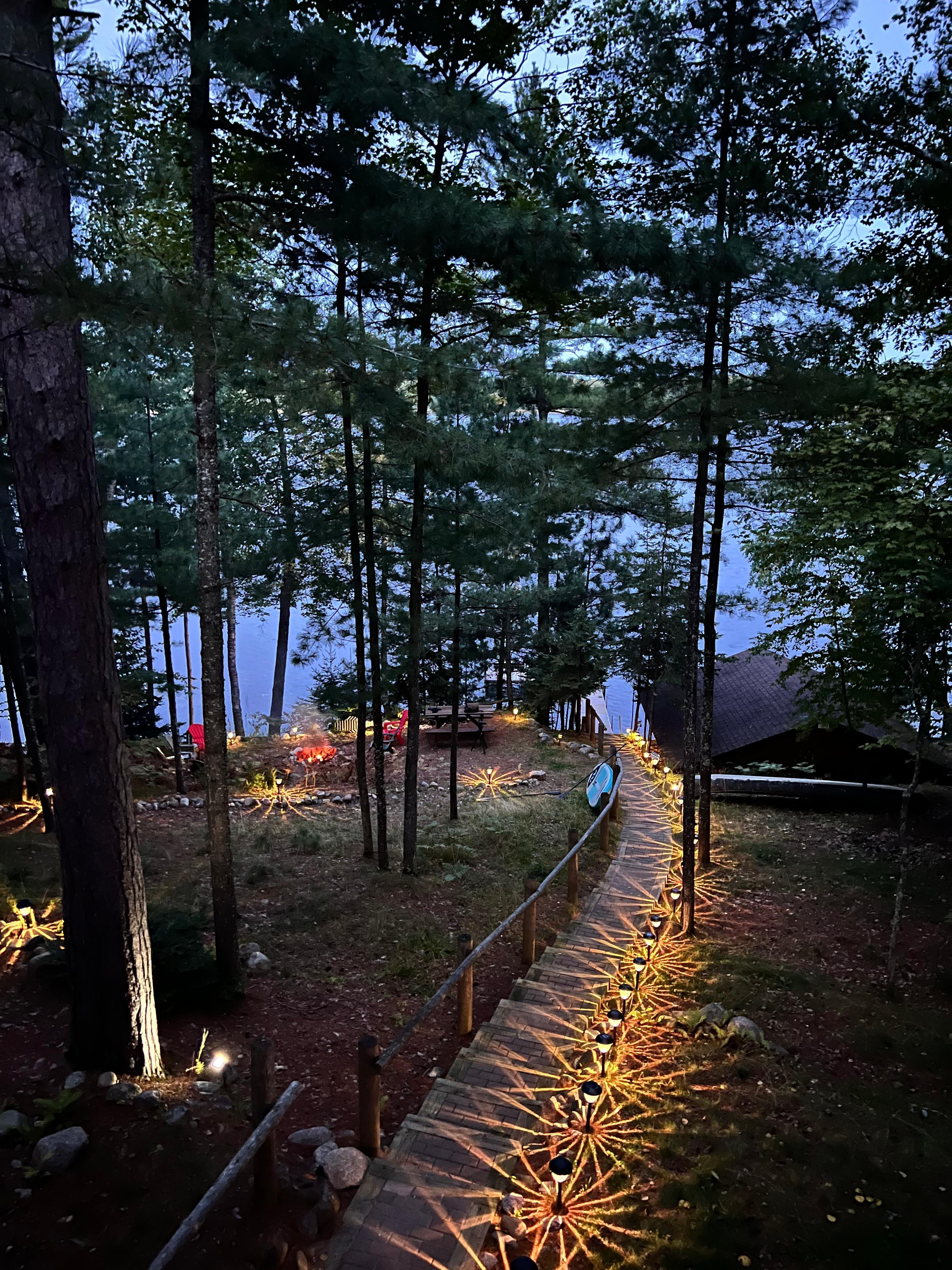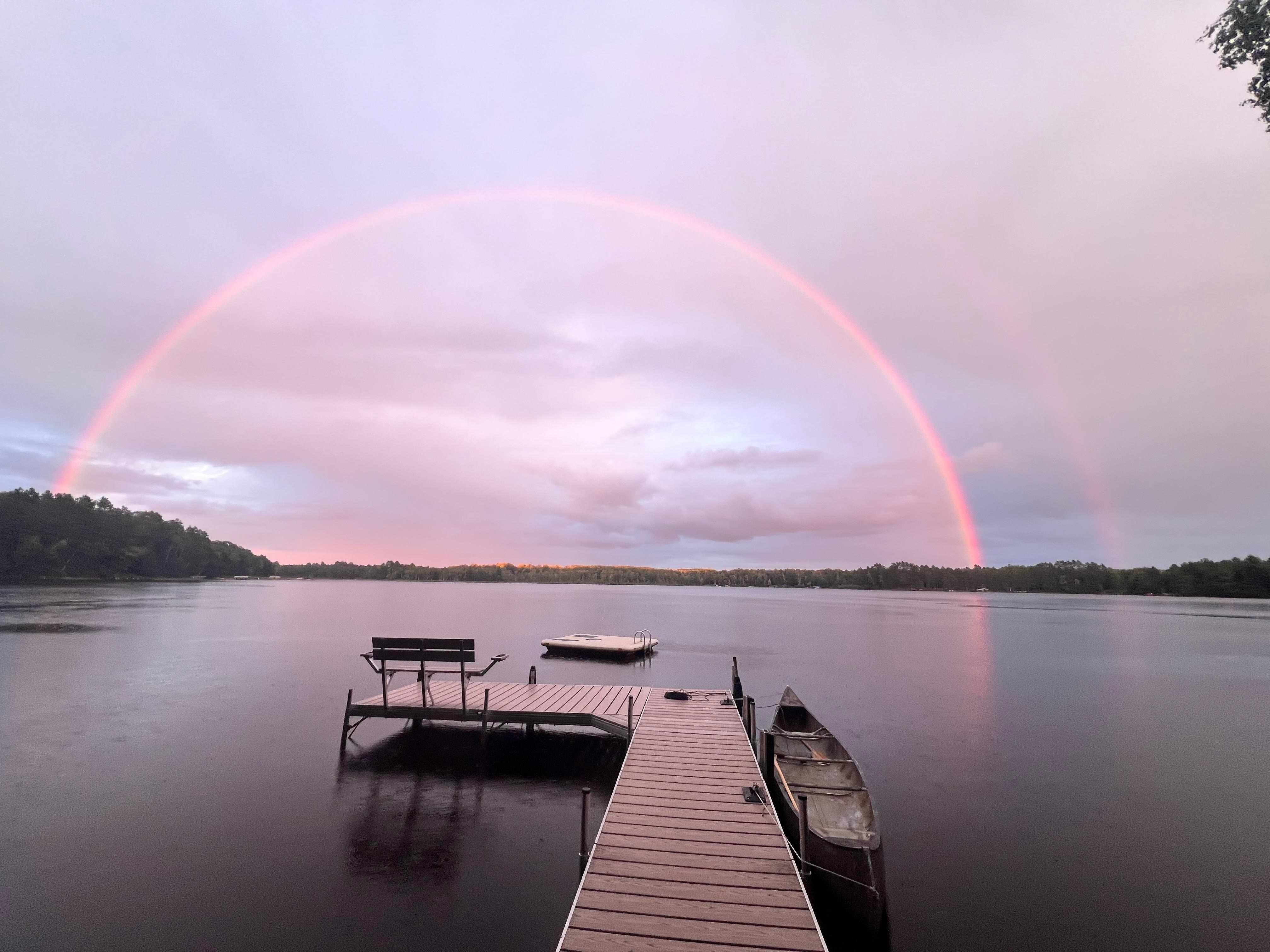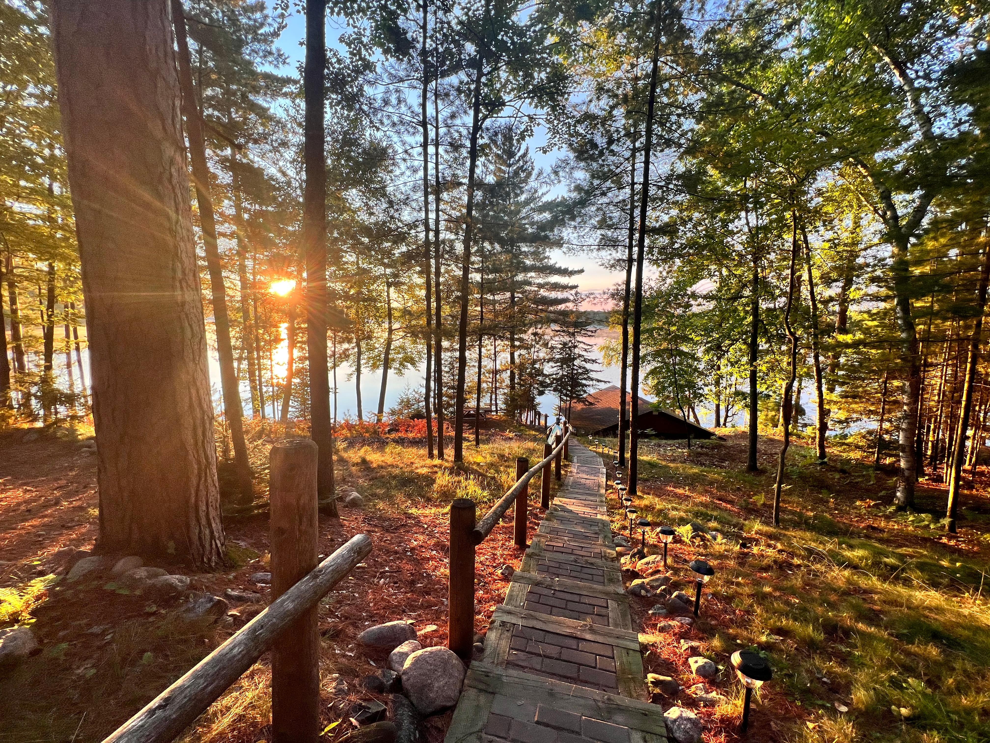 Our beautiful and private lake home is located perfectly between St. Germain and Eagle River and Rhinelander! The home has 3+ bedrooms and two large bathrooms, and it is located on a one-acre, stunningly wooded private lot. Echo Lake is part of the famous Sugar Camp Chain of Lakes, which also provides Class A Musky fishing – hosting numerous fishing tournaments. Other accessible lakes include Dam Lake, Sand Lake, Stone Lake, and Chain Lake – comprising 2,300 total acres of water surface. Our secluded property is located on the west side of the lake, with approximately 120 feet of private shoreline, and provides gorgeous views of the lake, woods, and sun rises. A large 32-foot private pier overlooks the lake with a sandy shoreline offering a gentle sloping, non-weedy swimming area. We also have a swim raft approximately 15-20 feet off the pier which provides lots of entertainment for kids (and adults).