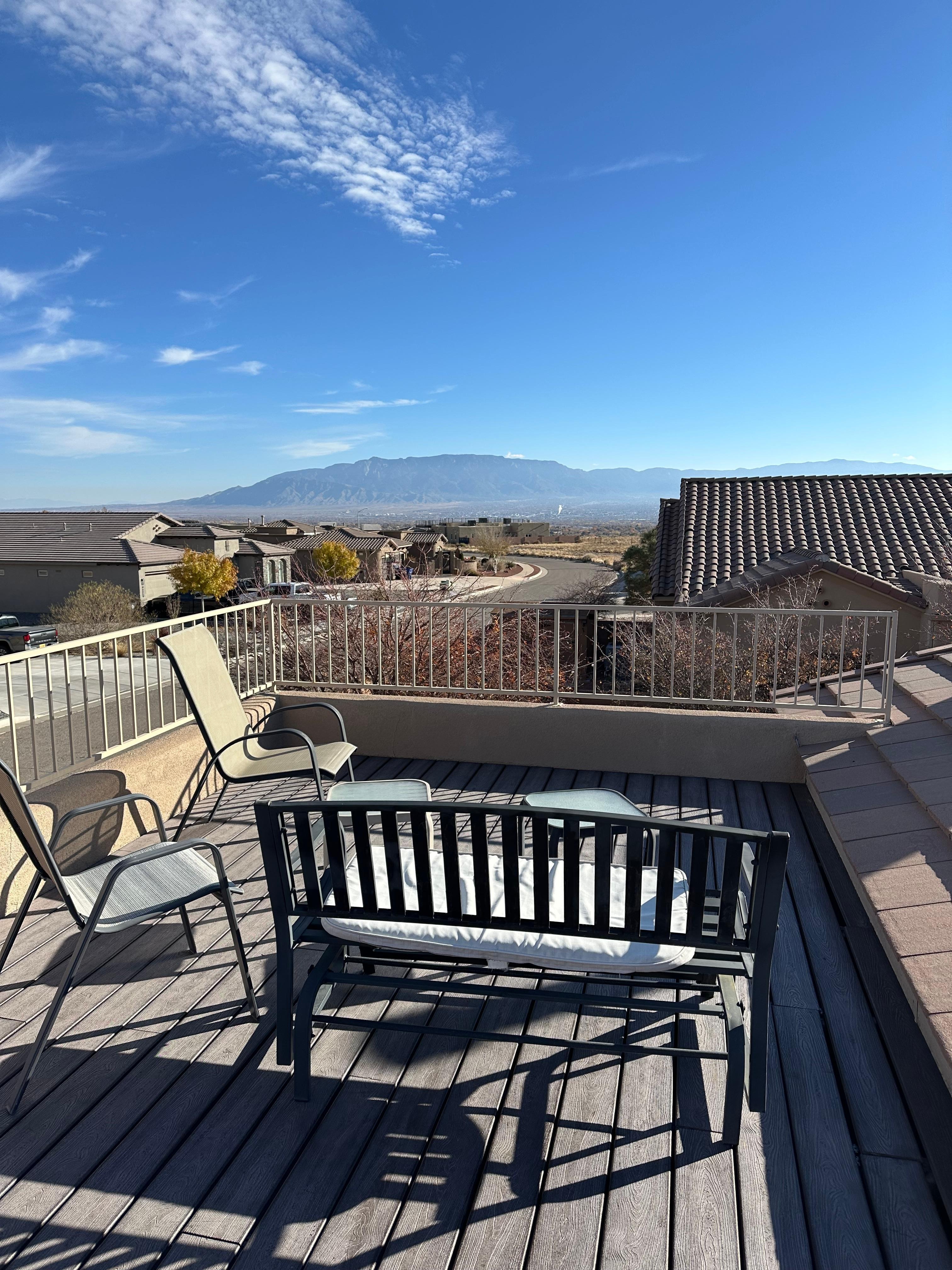 This 3200 sq. ft. home offers plenty of space for the family. Just across the street from Petroglyph National Monument, the property boasts amazing views of the entire city of Albuquerque from the roof-top deck. Enjoy a private hot tub, a backyard swing set and toys and games for the kids for a fun-filled stay. High desert walking and hiking trails directly accessible from the property make this a perfect place to enjoy the natural surrounding landscapes.
