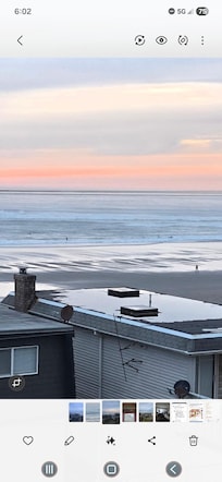 Please note: There is a single row of houses and some overhead phone wires between the building and the beach. However, our fifth-floor condo offers beautiful views of the ocean through large picture windows.