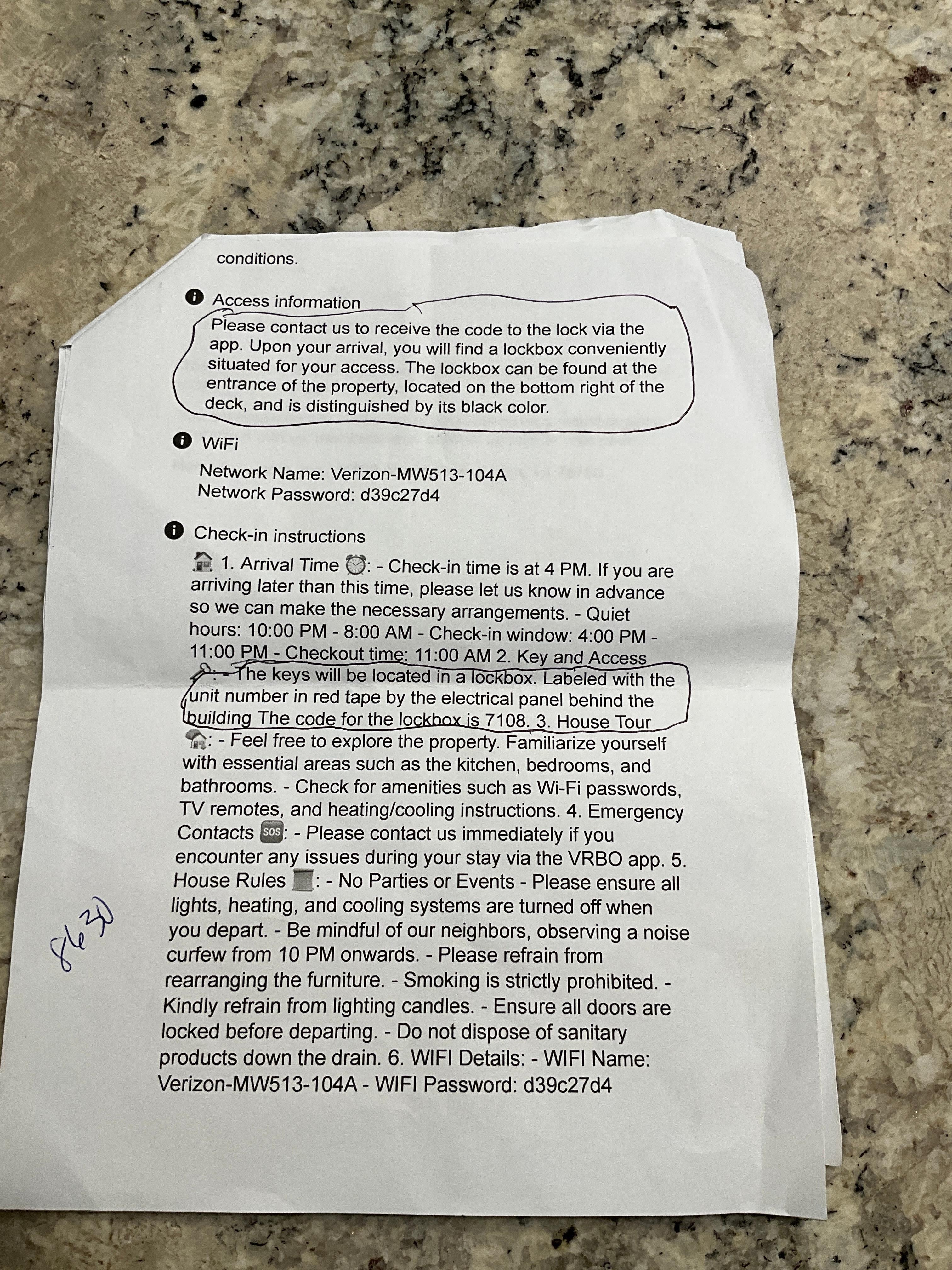 Had a trouble getting in the hous I, instructions were confusing telling two different stories.spot for lock box was incorrect and had a wrong code Unit was clean inside and well decorated We had trouble with tv and finally was able to get Netflix The 2 queen beds were not good they appeared old and sunken towards middle very uncomfortable!,heating and fireplace excellent. Lastly we only saw cleaning instructions at last minute and thought they might have been more visible