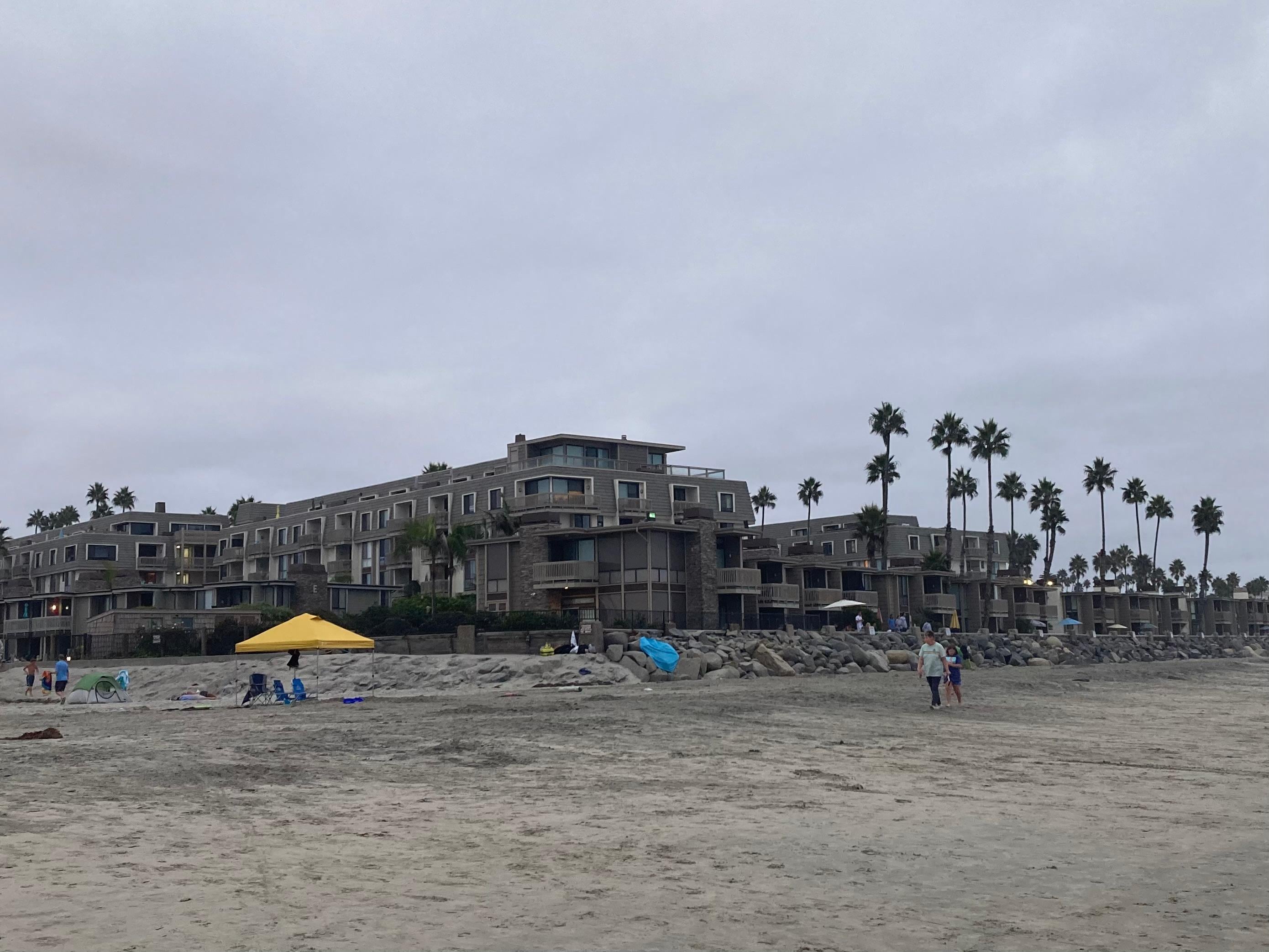 This two bedroom two bathroom panoramic ocean and beach view condo is on an outside corner viewing straight to the ocean and beach on one side. The second side views Harbor Beach, the estuary, the San Luis Rey River, Harbor Village, and the marina. The west facing balcony offers more dramatic viewing to all beach and ocean possibilities. The condo is equivalent to being four floors above the ground below.