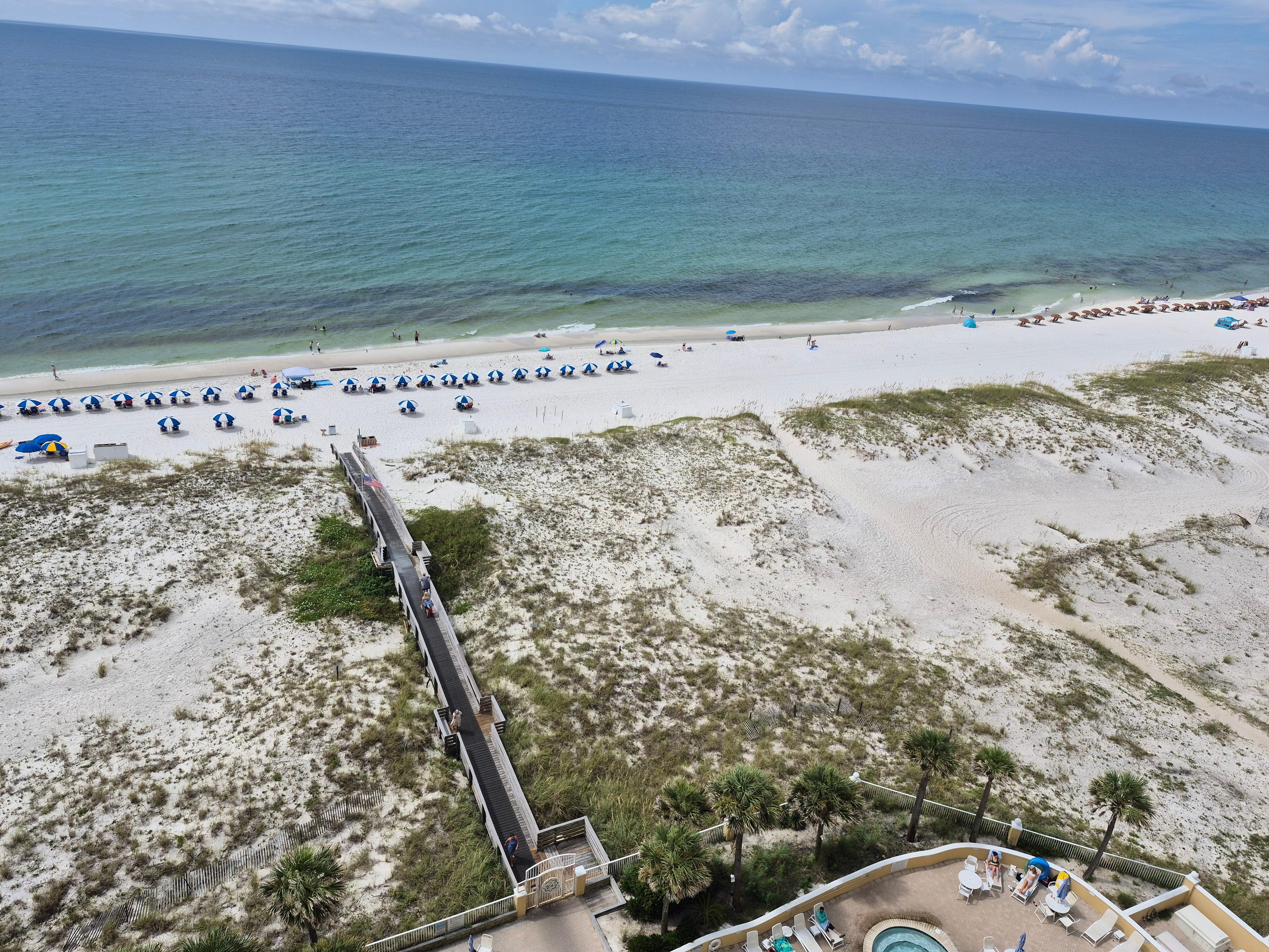 Emerald Isle has the best views and access to the Gulf of Mexico and beach of any other vacation destination on Pensacola Beach, which is exactly why it also has the most high-end rentals every year. Emerald Isle is a 17 story luxury high rise condominium sitting on 5 acres with 300 feet of beach frontage. There is no street to cross to get to the beach, once you walk out the back door to the pool area you are only a few feet away from the sand and beach. Emerald Isle is also conveniently located in the heart of Pensacola Beach, within walking distance of The Boardwalk, restaurants, boutiques, live entertainment, and the famous Pensacola Fishing Pier.