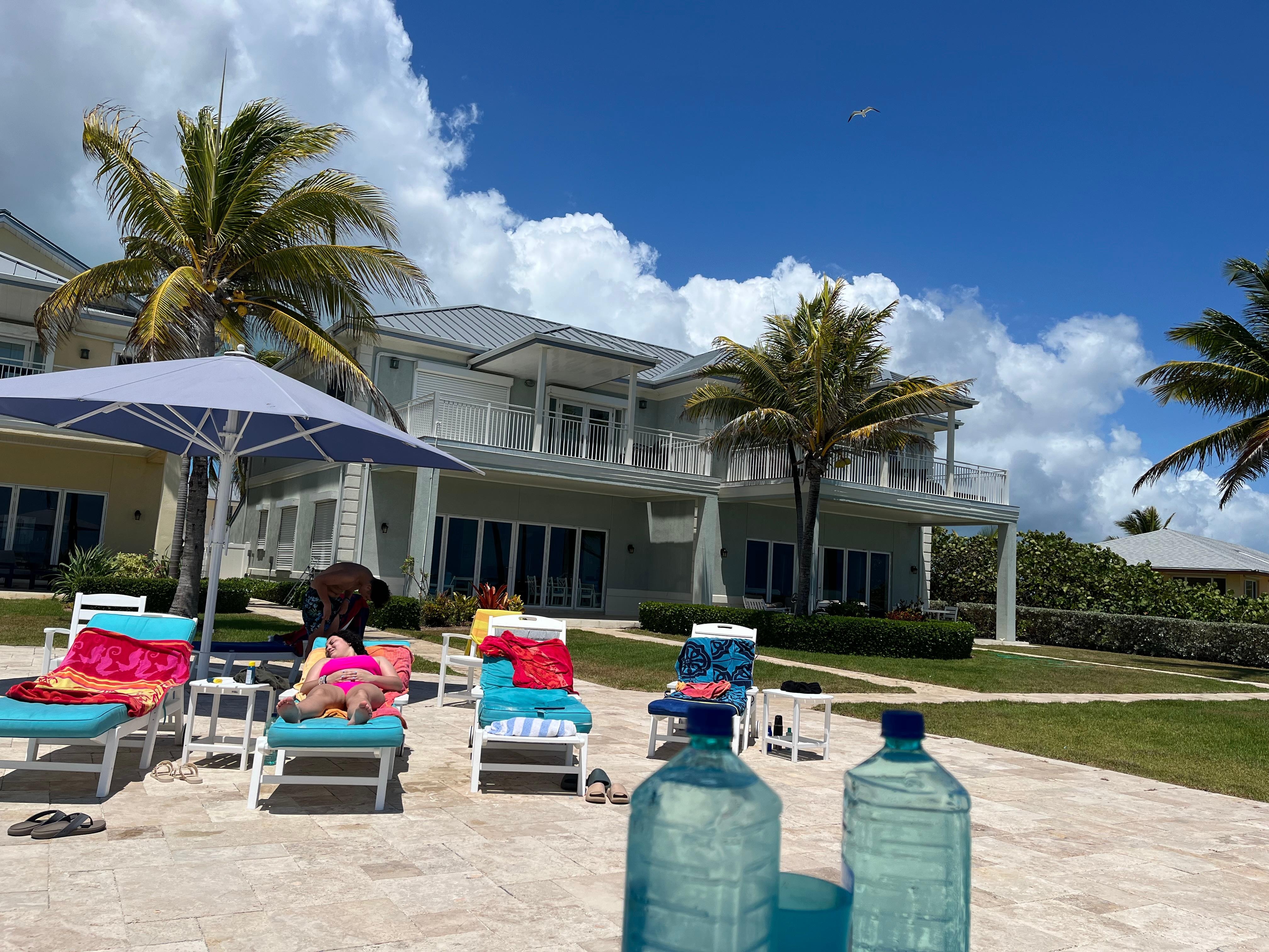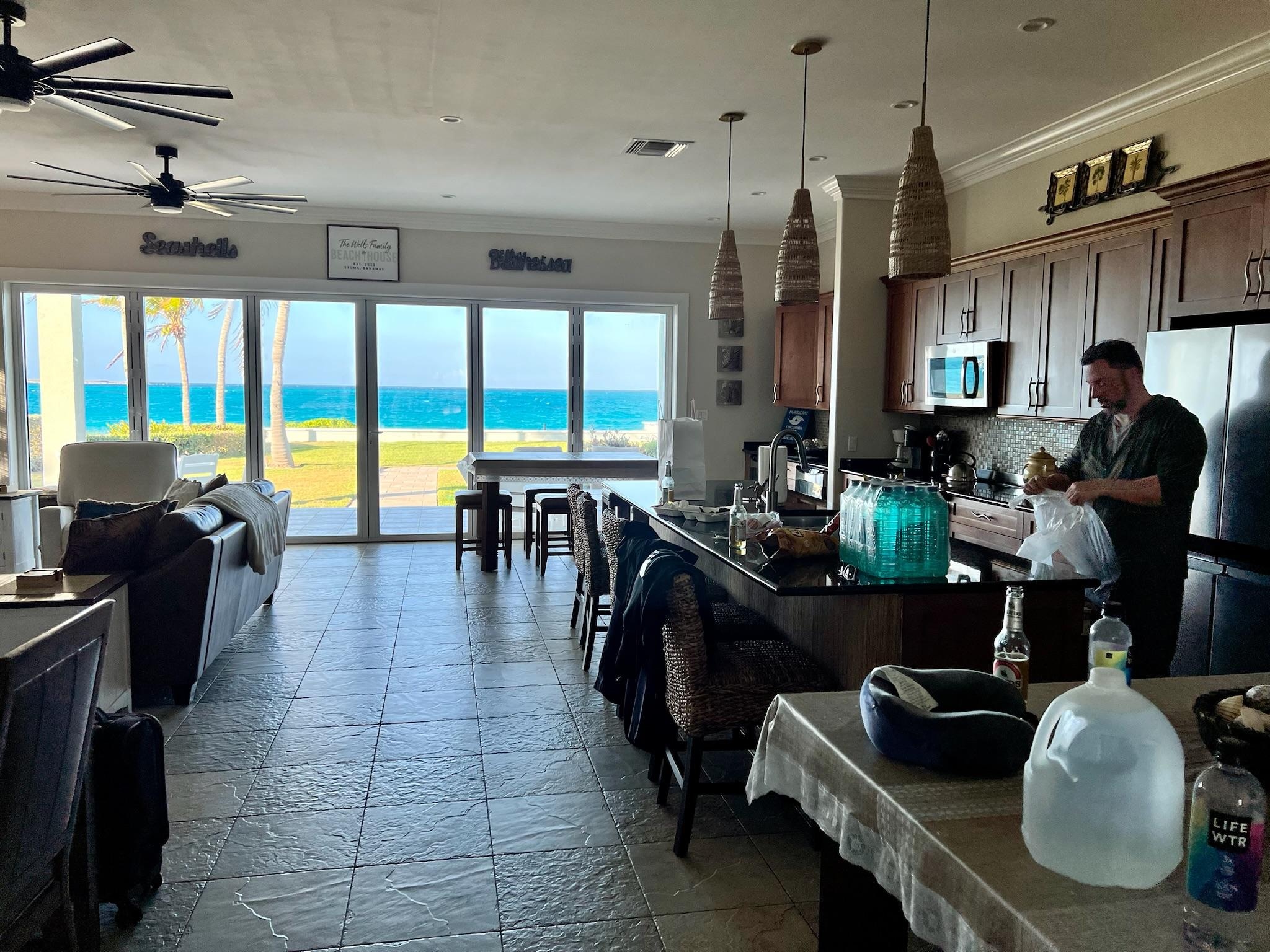 Welcome to beautiful Exuma. This Jimmy Hill property complex is a short 2 minutes drive from the airport. Enjoy a large infinity pool with hot tub, overlooking the stunning aqua blue water. The pool area features a 4000 square foot patio with many lounge chairs, tables and chairs and umbrellas. A few steps away is one of the nicest beaches on the island with the bluest shades of color you will ever see, and the ability to walk for miles in either direction. This property features a 20 foot opening glass wall on the ocean side for a picture perfect post card view. There’s a 12ft x 30 ft ground level patio, outdoor table seating for 10, a plush outdoor lounge seating set and a gas BBQ. There are 2 King Master suites upstairs with oceanfront balcony. The third bedroom has a new Queen bed and double bed , along with its own bathroom. The fourth bedroom is a lower level king master suite with a new rain shower. For your convenience, there is a washer and dryer upstairs. Open concept kitchen offers high end appliances such as Kitchenaid oven/cooktop, dishwasher, refrigerator/freezer, pop/beer fridge, wine fridge and microwave. Satellite TV in living room and Master bedroom, TV/DVD in all bedrooms, and a DVD and book library for your pleasure. Don’t miss out on the rest of the island. Great, friendly locals, delicious food and drinks and lots of fun! Visit Stocking Island by water taxi, do half or full day excursions snorkeling the Thunderball Grotto, visiting the pigs, iguanas or nurse sharks. You can also explore with kayaks or go on fishing trips. Whether you are looking for fun excursions, exploring different beaches or just relaxing at the pool, this property is the perfect place for you! IMPORTANT: The power on the island can be somewhat unreliable from time to time. We do have a large onsite generator with automatic transfer switch that supplies instant power in the event of a power outage. Now offering optional services: grocery shopping, meal preparation and daily housekeeping. IMPORTANT: Please call or text prior to your stay to go over any questions and to receive the door code.