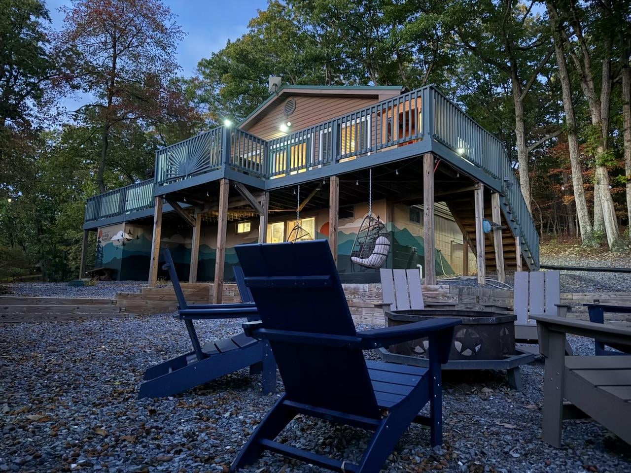 Step outside and breathe in that crisp mountain air. The expansive deck is your go-to spot for grilling up a feast, lounging in the hammocks, or sweating it out in the sauna. When the sun sets, gather around the fire pit with Adirondack chairs, toast some marshmallows, and soak in the peaceful vibes. And let’s not forget the hot tub—because no mountain escape is complete without a steamy soak under the stars.