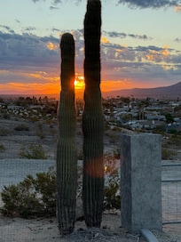 Perched on a hill in 29 Palms, there really isn't a better 360-degree view in town. Ringed by mountains and blessed by equally impressive sunrises and sunsets, you also look down on the town itself. Alone on 10 acres, with another empty acres adjacent to it, it's a real oasis in the middle of town, just five minutes from groceries and restaurants, and less than ten minutes to Joshua Tree National Park. It's a terrific location to just take in the scenery, or for a base while exploring the area.