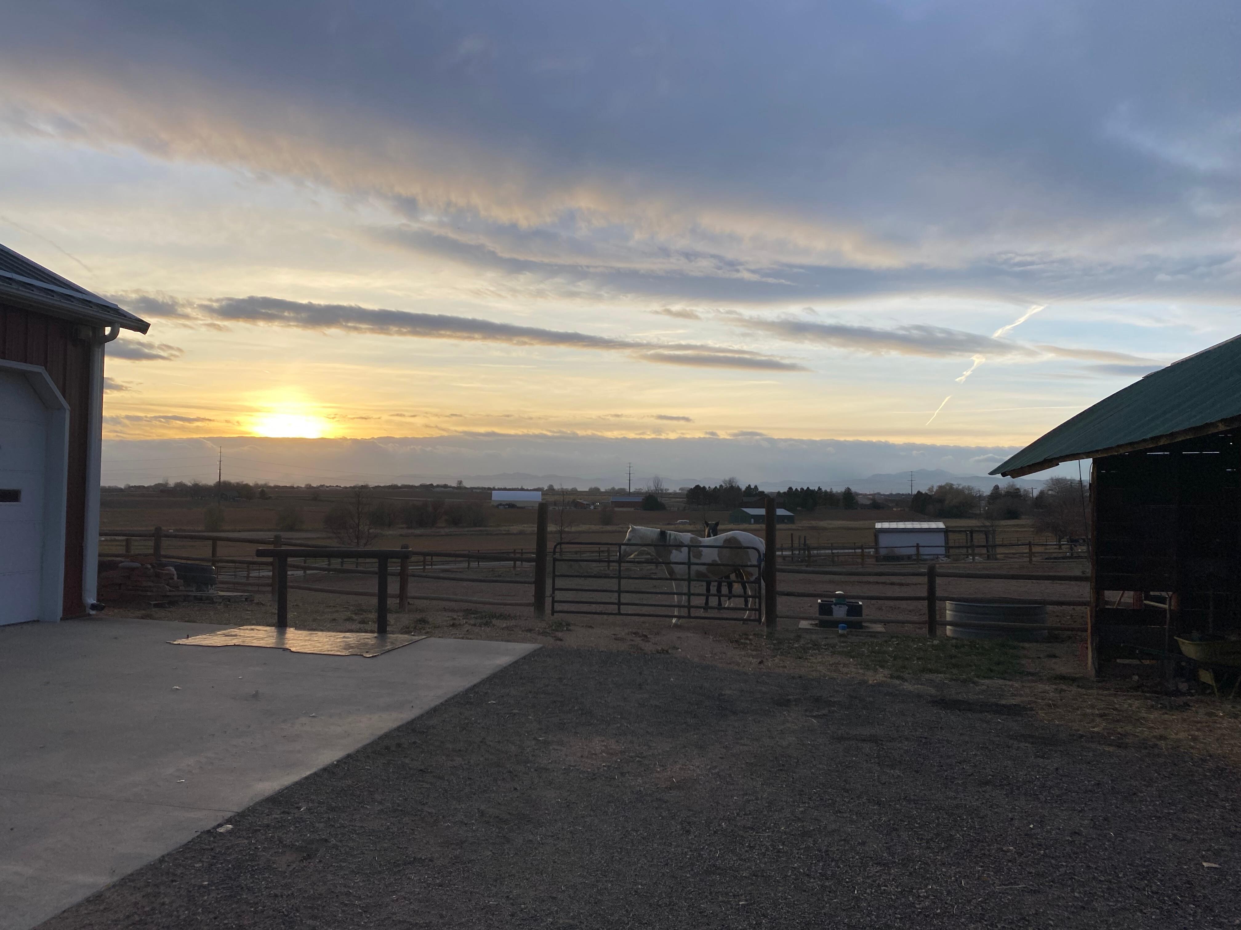 We have lived on this farm for 24 years, and it feels like a piece of paradise away from all the hustle and bustle. We are only 1 mile from I-25 so it is ideal for getting to, and away from the city on a major thoroughfare. We are surrounded by farm land and have few neighbors.