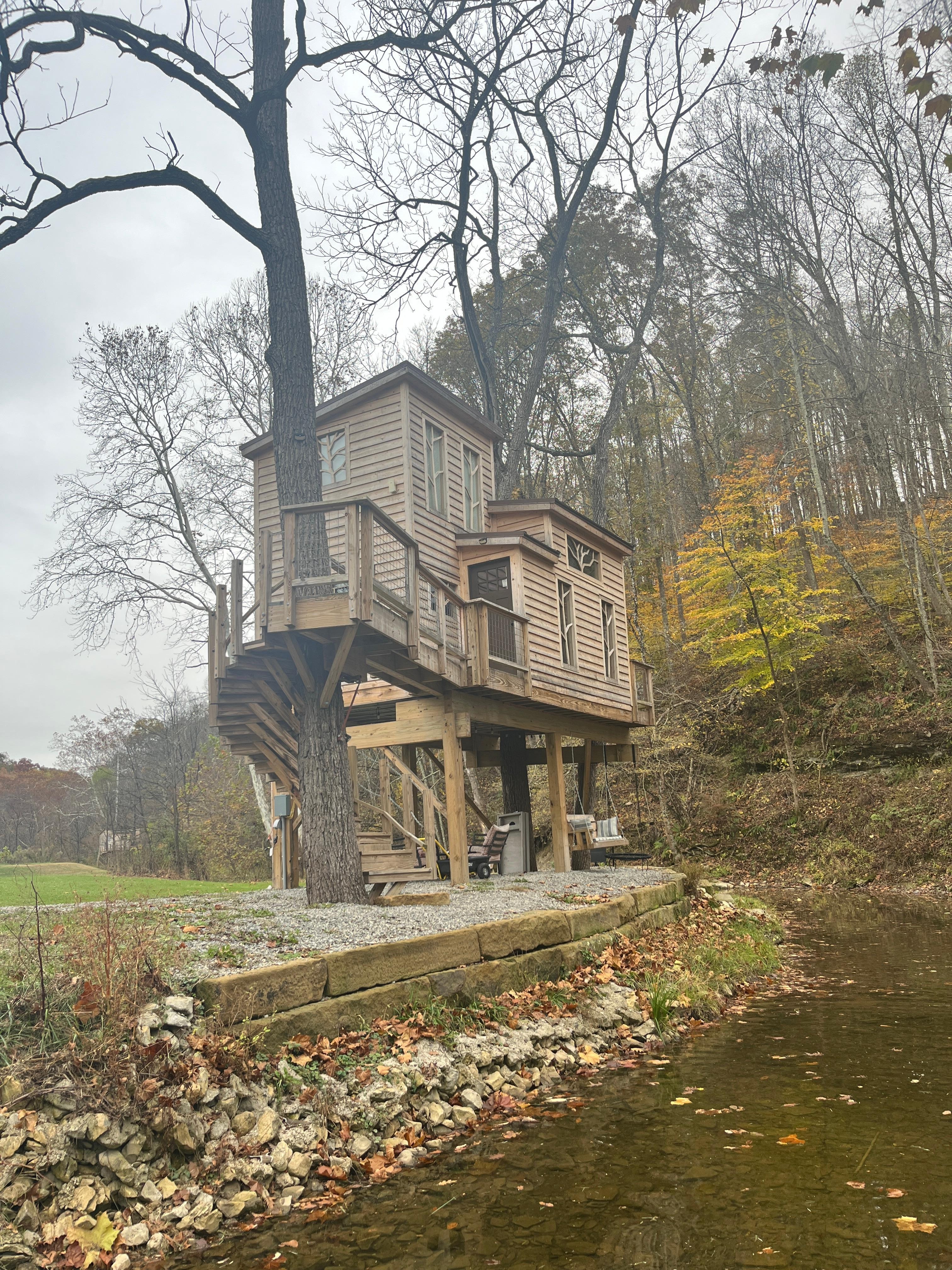 ***New Listing*** The Royal Roost Treehouse at Owl Hollow is an unique and luxurious lodging experience. It is situated in a stand of walnut trees on the edge of Owl Creek. This secluded treehouse has an loft with a queen bed and a bunk area with two twin beds. There is a convenience kitchen with an induction range, microwave, refrigerator and Keurig. There is AC/heat and two fans. The treehouse has Wifi and two smart TV's with included Netflix. There is a strict no smoking and no animal policy. Due to the nature of the treehouse, all guest will need to be able to navigate a staircase to the treehouse and also navigate either the ships ladder to the loft or the ladder to the bunk area. The Treehouses at Owl Hollow is a unique treehouse retreat nestled in the foothills of the Appalachian Mountains. Our treehouses offer a luxury experience on the headwaters of Sunfish Creek. Our team is dedicated to providing you with the best possible stay, surrounded by stunning scenery and comfortable amenities. Explore the great outdoors during the day and relax in your private treehouse at night. Book your stay now and experience the magic of The Treehouses at Owl Hollow. At The Treehouses at Owl Hollow, we believe that your stay should be comfortable and stress-free. That's why we offer a range of amenities and services to ensure that your stay is as enjoyable as possible. From our cozy treehouses to our beautiful surroundings, we have everything you need to relax and unwind. Our amenities and services include:- Complimentary Wi-Fi- AC/Heating and Electric Fireplace - Kitchenette w/ Induction Range, Microwave and small Refrigerator - Smart TV's w/Netflix - Decks - Covered Seating Area - Swing - Hammock - Fire Pit - BBQ Grill - Walking Trails. In the future we hope to also offer bicycle rentals and guided hiking excursions. We are a service oriented family run lodging business. Book your stay today and experience a path less traveled. Find yourself in an area blessed with remote wilderness, full of adventure and seclusion. Monroe County and its surrounding region offer many opportunities to explore the backwoods charm of rural Appalachia. **Please check out our area tourism website for activities and area information**