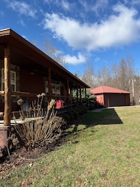 After a full day exploring our area, you may want to relax on the covered front or back porches in one of the many Log Rocking Chairs. There is a gas grill for your meals in the evenings, propane is provided. There is an outdoor Fire pit for evening fires, roasting marshmallows, enjoying a glass of wine or just enjoying the many stars!