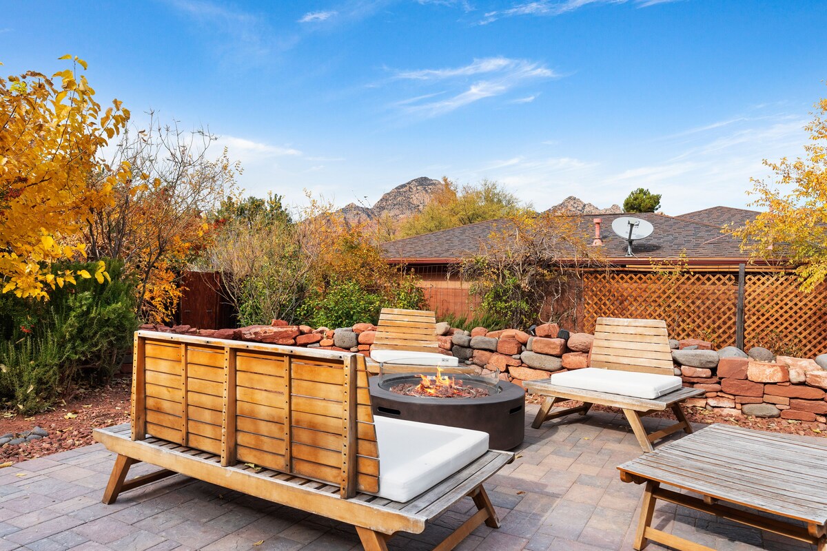 This exquisite three-bedroom, two-bathroom residence is the perfect destination for a Sedona retreat, whether you're planning a getaway with friends, a romantic escape, a business trip, or anything in between. Hummingbird's Heaven offers all the comforts and relaxation you desire indoors, while the outdoor area features a sauna, outdoor shower, and large swim spa/hot tub with an endless swim current. All of this can be enjoyed against the stunning backdrop of Sedona's iconic red rock formations.