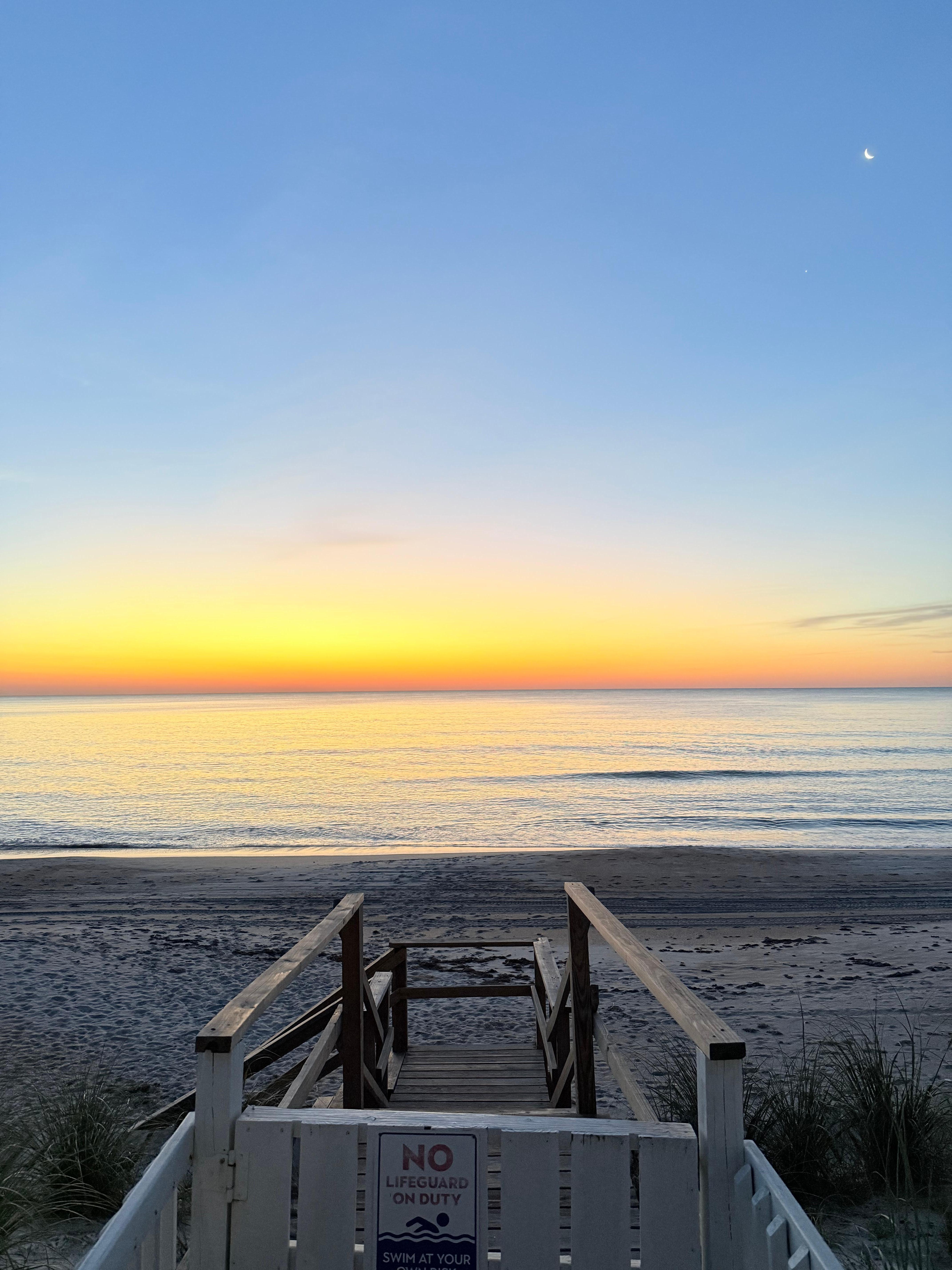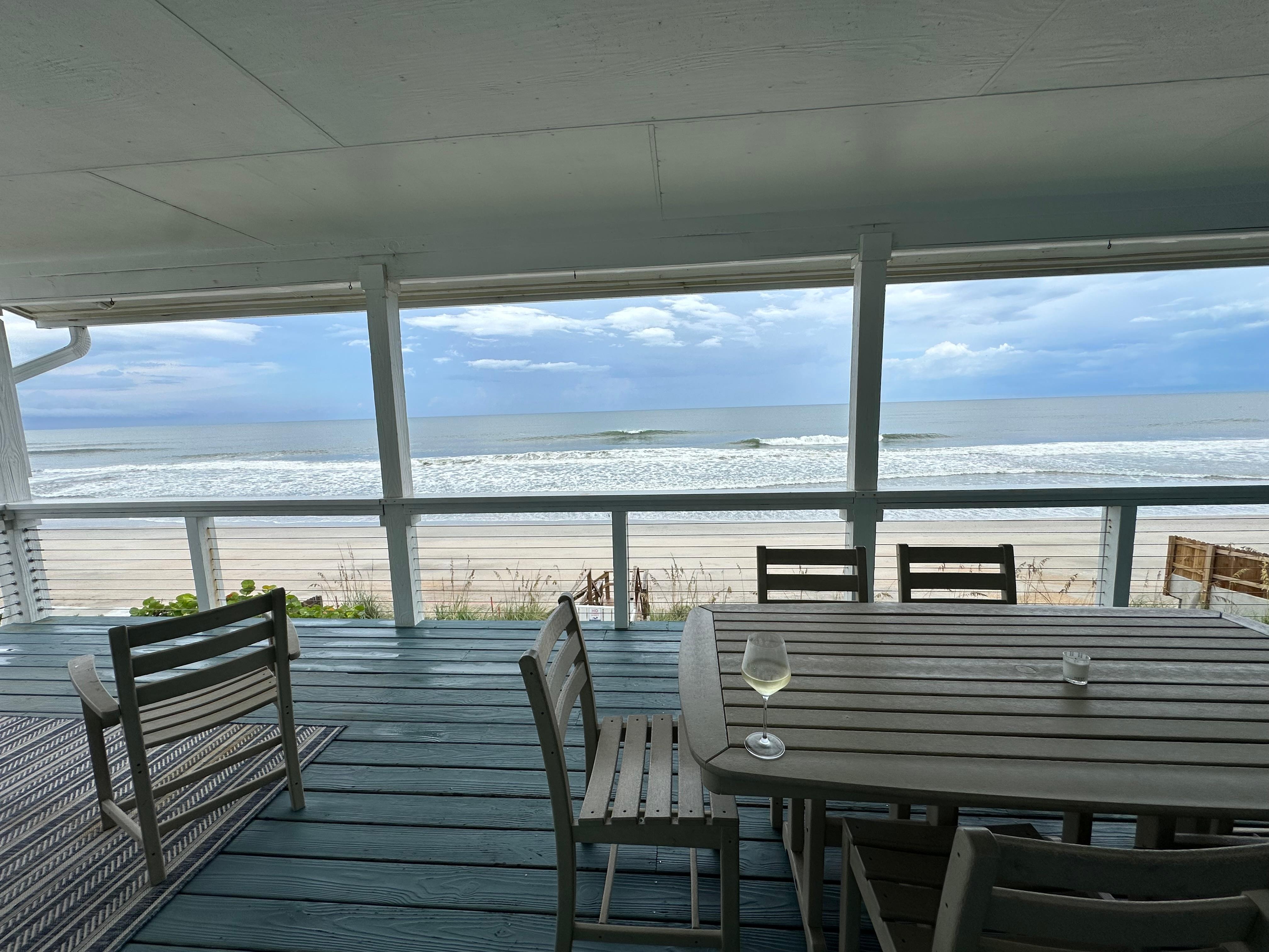 Enjoy your morning coffee watching beautiful sunrises over the Atlantic ocean, or step down from the back porch to take a walk on the soft sand or go fishing / surfing in the waves. Watch the sunset from the front porch looking over the Guana Preserve.