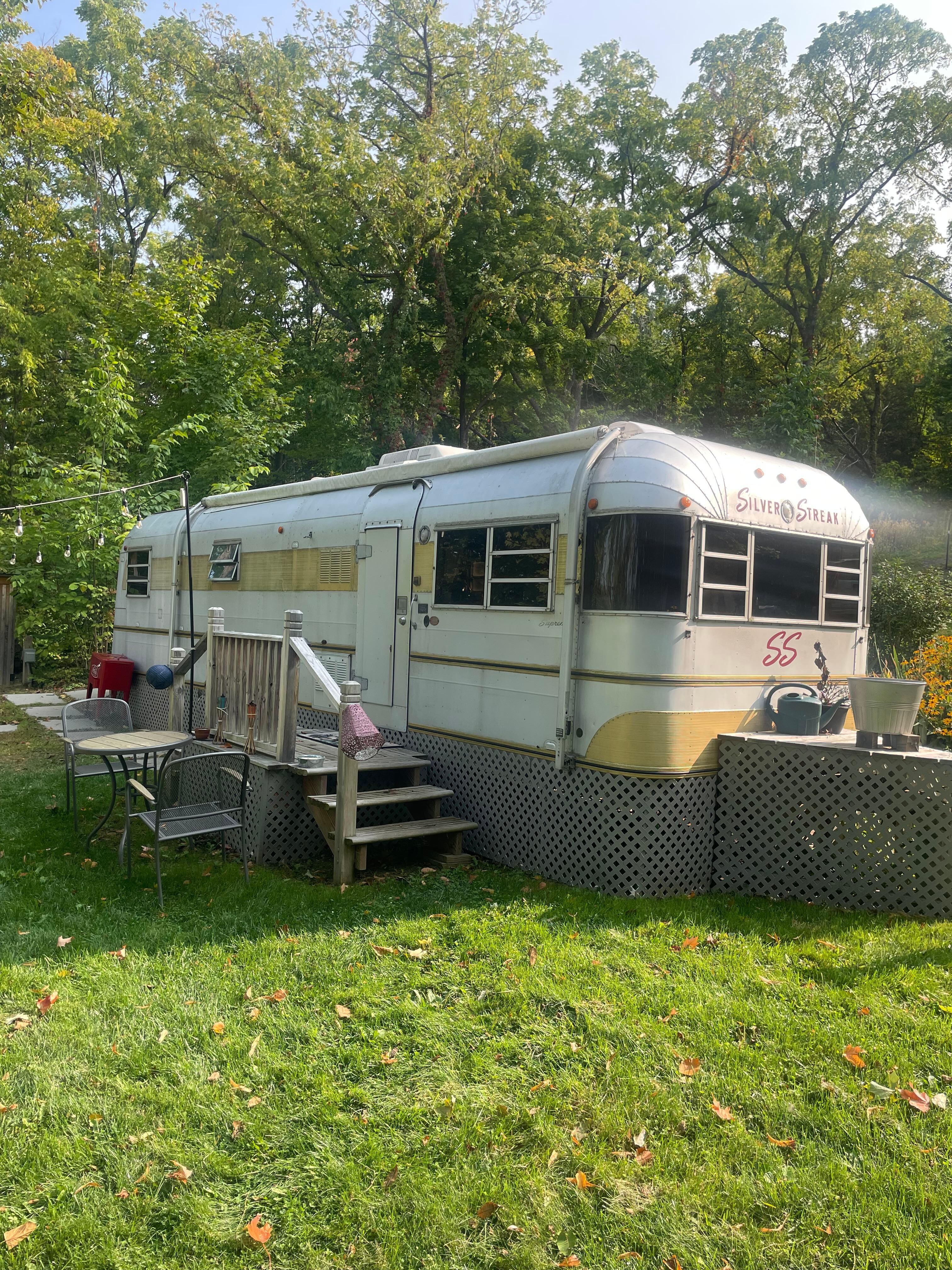 Our 1976 Silver Streak Supreme camper is a retro time capsule that’s been tastefully updated with comfortable furnishings and amenities. The 27 foot long aluminum trailer overlooks Seneca Lake through Shagbark Hickory trees where bald eagles occasionally perch. It's located in the heart of wine country, with at least 10 wineries within 10 miles as well as breweries, a cider house, and distillery.