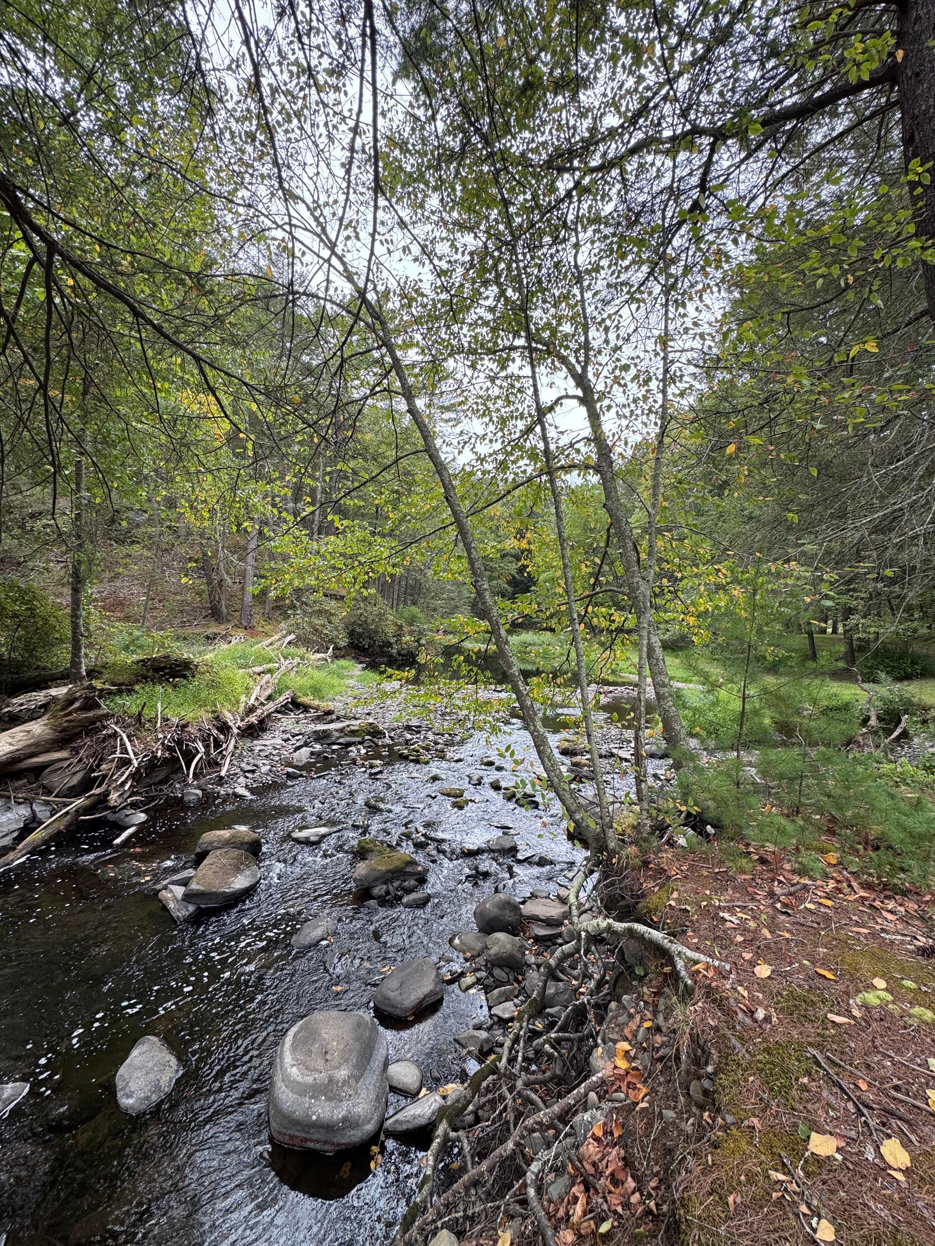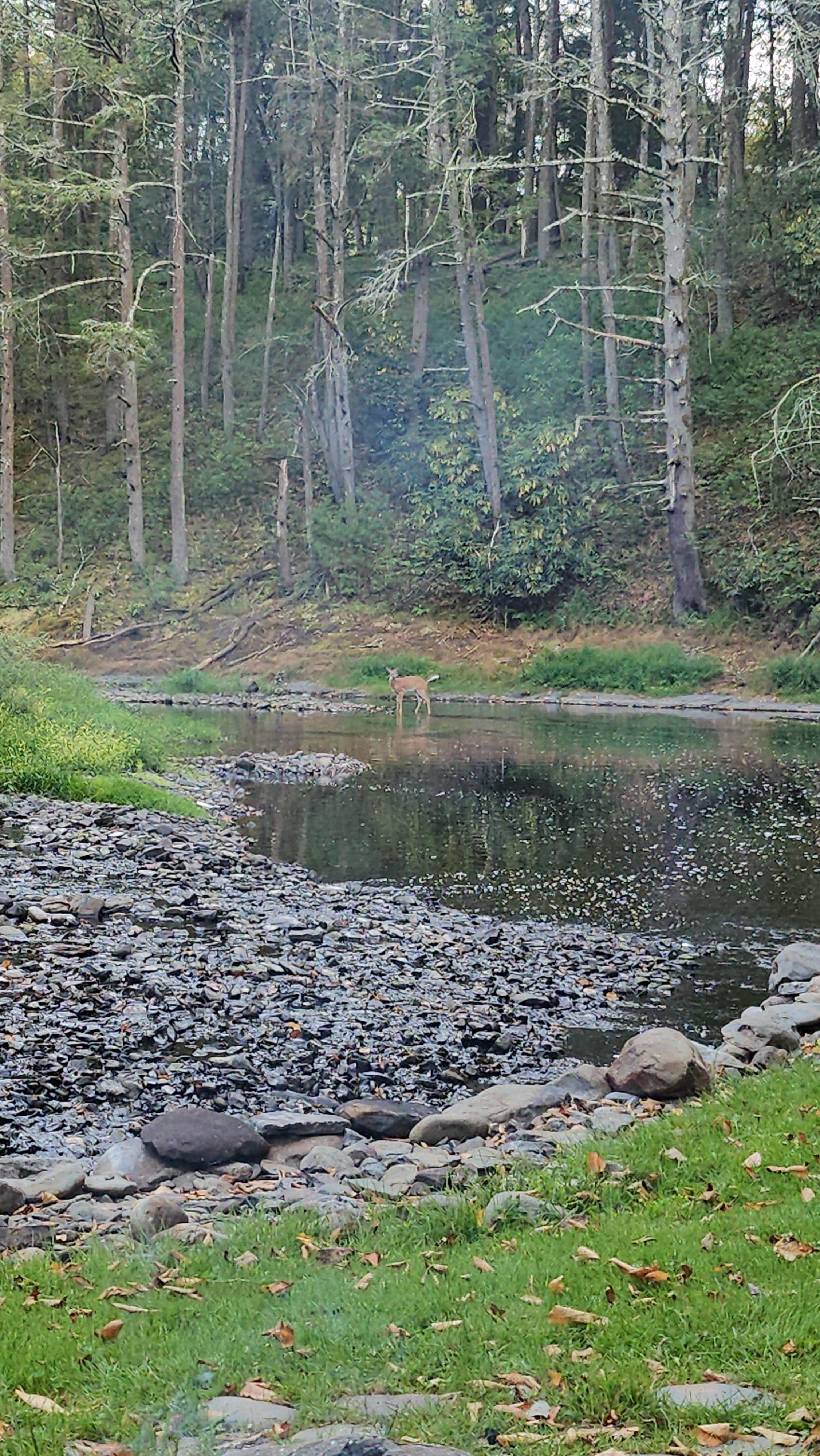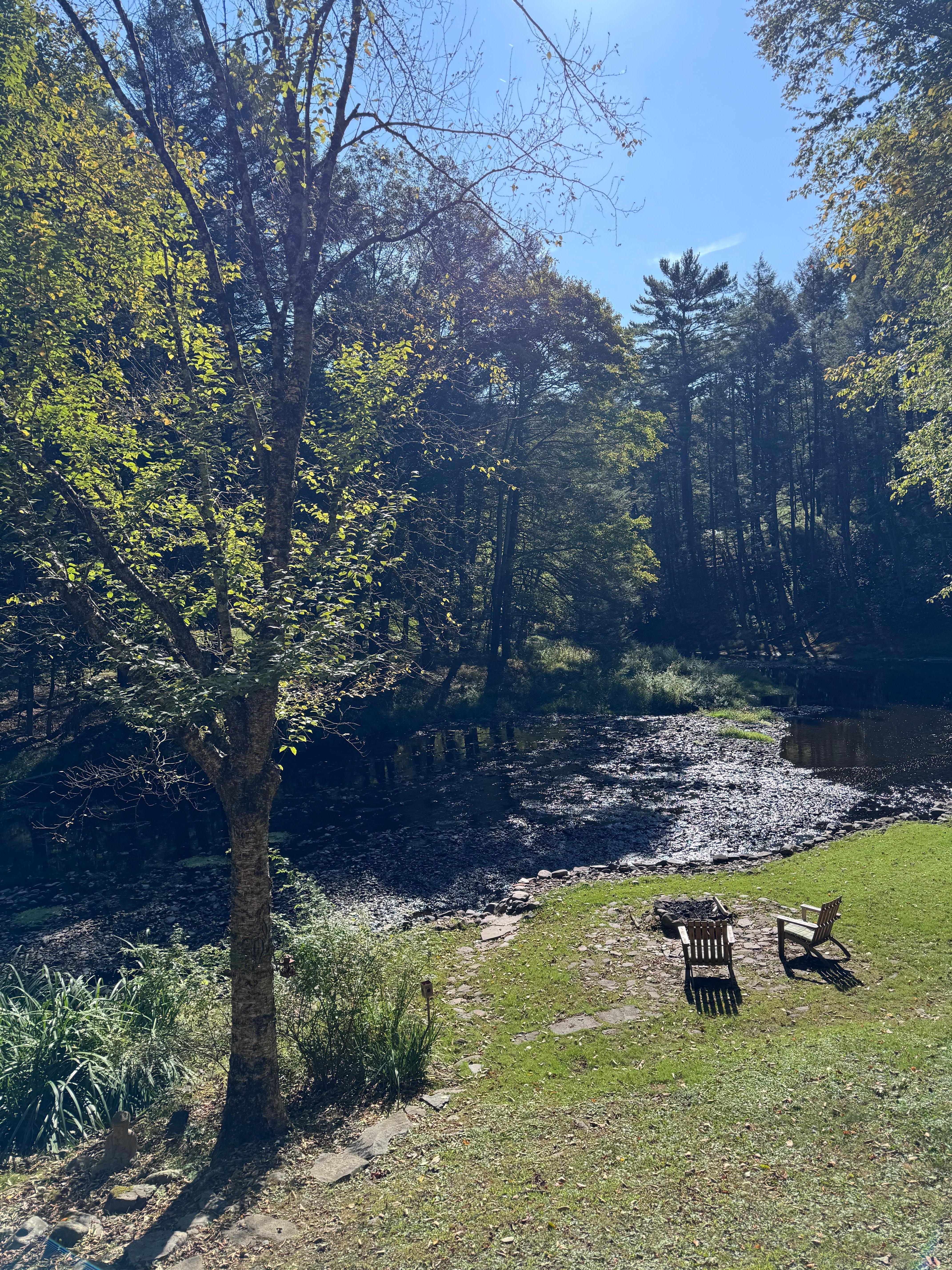 The property is 1 1/4 acres in a secluded quiet area with no visible neighbors. It is a place to connect with nature and enjoy true peace and serenity. You can fall asleep at night listening to the sound of the running water and wake up to the sounds of nature. Read a book on the deck or take afternoon naps in the hammock. Fish from the back yard. The creek has native trout and is stocked. Watch the fish jump out of the water from the back deck. See the deer crossing the creek and a blue heron searching for fish on the rocks. The deck has a picnic table and a grill for outdoor eating. There is a patio with adirondeck chairs and a fire pit to sit around at night and watch the stars. There is a kayak for you to use in the creek to relax or fish and river tubes to float. You can use the beach chair if you want to just sit and cool off with the water running over you.