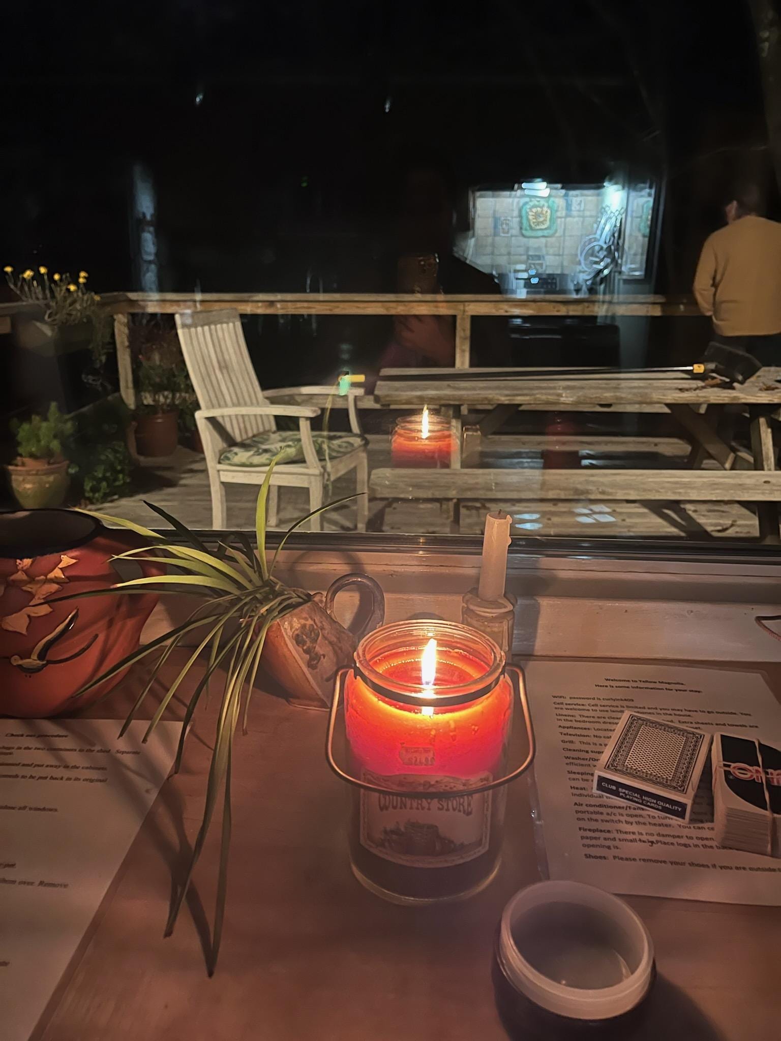 One guest bedroom, 1 large bathroom, eat in kitchen, living room with a wood burning fireplace and high cathedral ceilings, a sun room with comfortable furniture and a laundry area. The whole back of the house has windows that look out onto the creek. There is Wifi, television, DVD and a stereo CD player. There is a portable floor air conditioner in the kitchen and living room area and ceiling and floor fans in each room. Most of the time it is cool enough that it is not needed. I love to keep the windows open to hear the sounds of nature and the running water. The guest bedroom has a full size mattress, desk and dresser. The sun room has comfortable modular furniture that you can sink into. It can be rearranged to comfortably sleep 2 persons... This room overlooks the creek with 2 large windows and a sky light. There is a folding standing divider if you want privacy.
