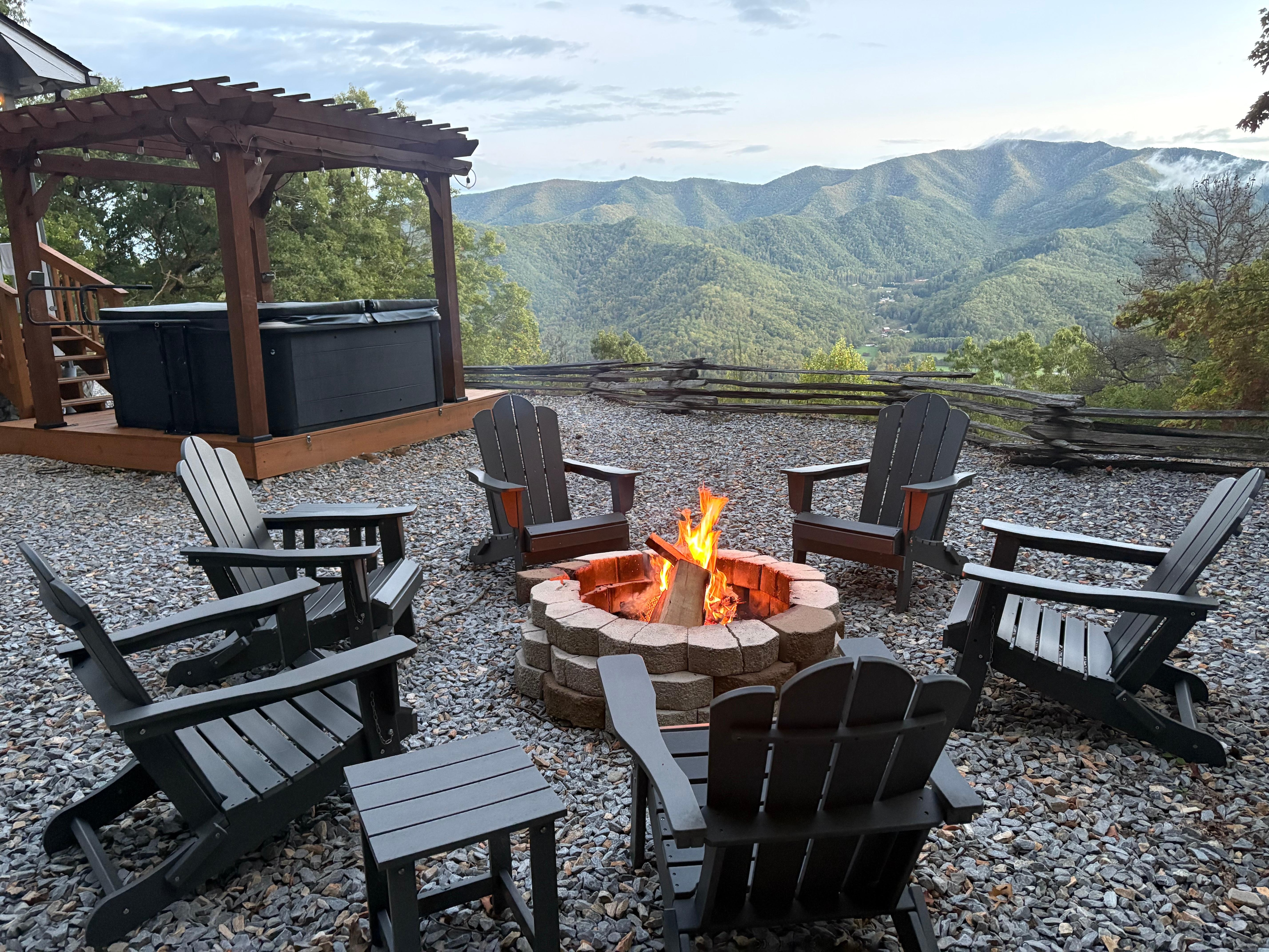 Your search for the perfect Mountain getaway home is over! Azure Heights features a 7-seater hot tub overlooking panoramic mountain & valley views, two king suites + bunk room, complete privacy on over 3 acres, a picture perfect firepit with outdoor grill, and huge, open skies for stargazing, Azure Heights checks all of the mountain vacation must-have boxes on our lists! If that wasn't enough, the property backs up to USFS land so the seclusion is amazing! The views from every angle of the property are nothing short of breathtaking, and the 3 bedroom, 2.5 bath home that sleeps up to 8 is more than enough space to create new memories. Enjoy the views from the hot tub, roast marshmallows around the fire, or enjoy an outdoor meal from the grill on our 3.3 acres of private, mountaintop paradise. Sync your phone to our outdoor bluetooth speaker for the perfect mood setting. Close to whitewater rafting, ziplining, hiking, Great Smoky Mountain Nat'l Park & Railroad, mountain lakes, boating, kayaking, Tail of the Dragon, Cherokee and so much more!