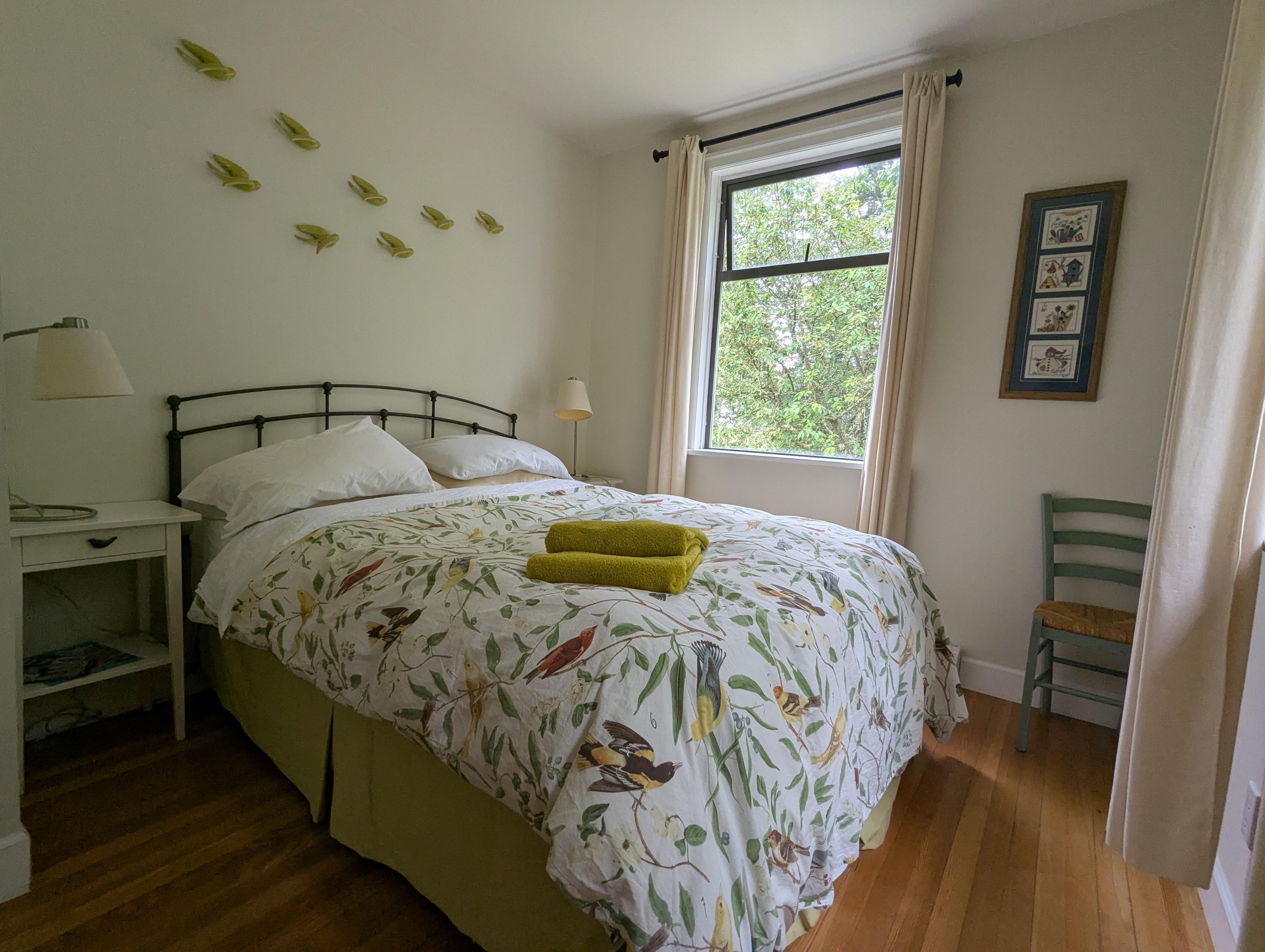 A peaceful sleep awaits you in one of 3 bedrooms: one with a queen bed overlooking the ocean, a second queen bed with views to the forest. A secret loft is also available for additional sleeping and has a queen size bed from which you can enjoy the stars and moon through the skylight. (It is accessed with an oak library-style ladder so not for everyone) Two newly renovated bathrooms also await you– one powder room and a second with a walk-in rain shower.