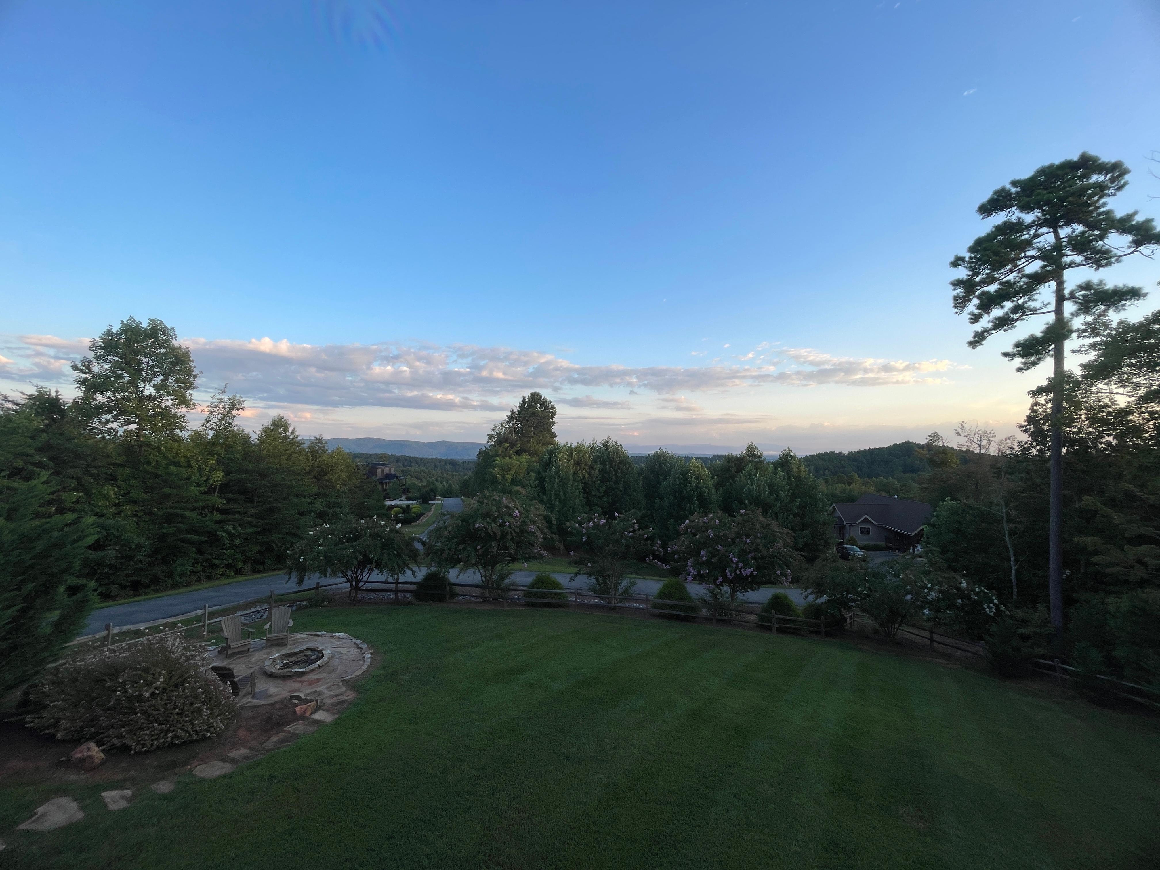 The Views Will Blow You Away!! Charming log home in gated community of Grandview Peaks in Nebo, NC. Everywhere you look are layered views of Grandfather Mountain, Table Rock & Shortoff Mountain. The picture perfect sunsets behind the towering Black Mountain Range are the perfect end to each peaceful day. This street is named Night Sky Dr. for good reason. A star-gazer's dream with big open sky. Bring your telescope! Open layout, spacious great room w/ stacked-stone gas fireplace centerpiece. Lovely granite counters, wood cabinets in kitchen. Stainless Maytag appliances. Primary bed & bath on main level. Entryway is large mudroom/laundry w/ 1/2 bath. Upstairs has a small loft - perfect home office; currently has futon bed for extra sleeping room; large guest bedroom & bath w/ tile shower upstairs. Naturally-manicured, fenced-in yard w/ gentle slope & rustic firepit seating.