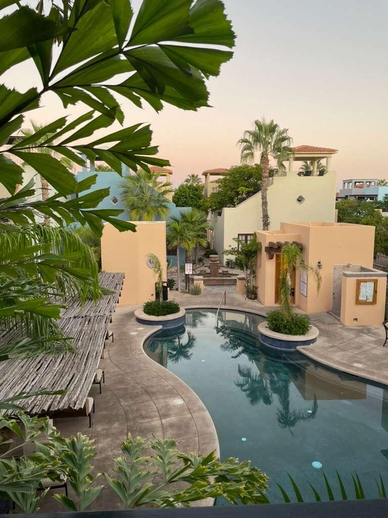 The master bedroom upstairs has a view of the pool area and also has a private bathroom with tub and shower. The downstairs bedroom has two beds, desk and its own bathroom. The kitchen is fully equipped for your comfort.
