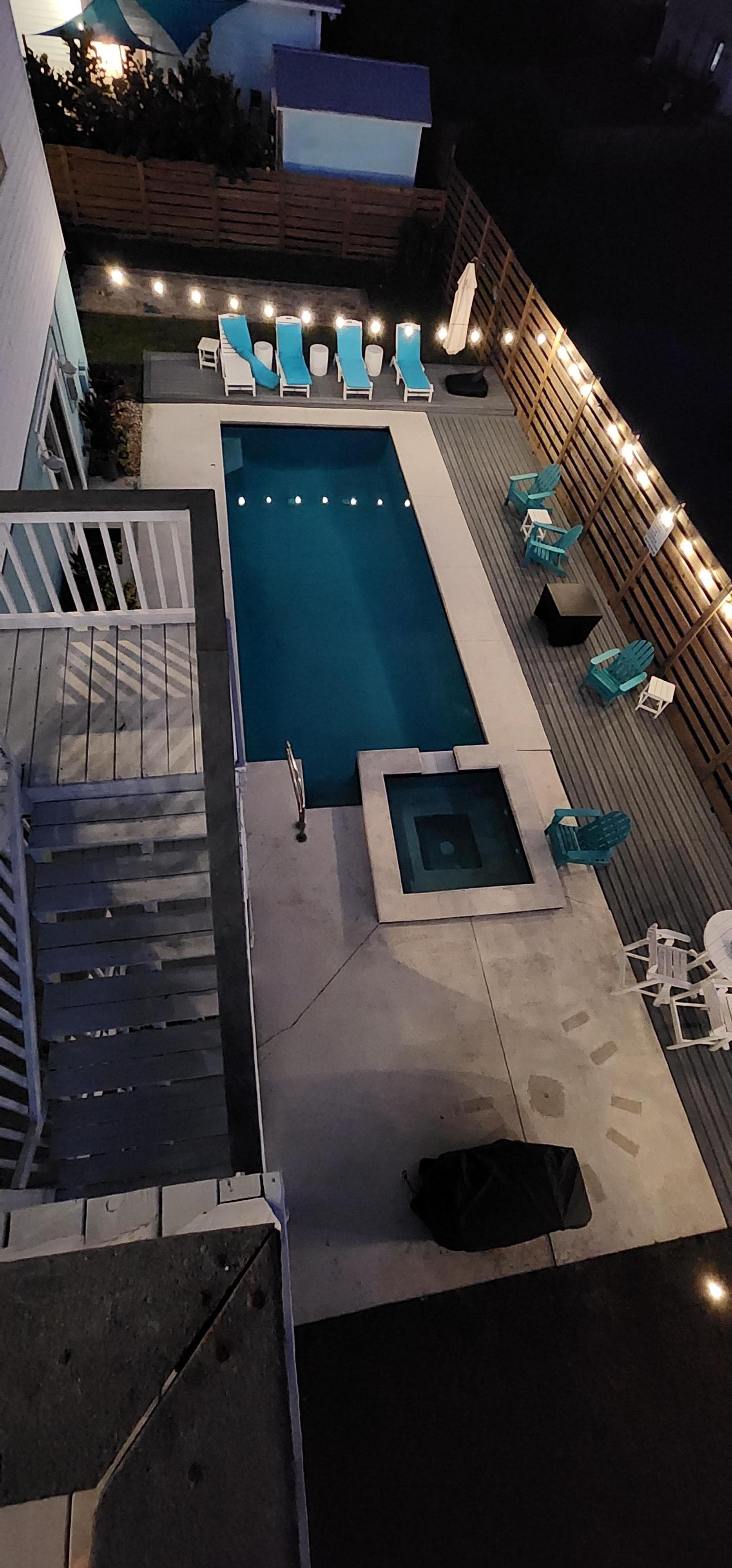 The pool is heated and so is the attached spa. (Heat is $60/day or $350/wk) There are two raised patio areas facing the intracoastal, 1 covered and 1 uncovered. An electric grill is on site for grilling and the 3rd floor patio has lots of space for dining outdoors with water views! The 2nd floor covered patio is decked out with comfy patio furniture in the shade. Our brand new lounge furniture on the pool patio is perfect for the whole group to enjoy, plus a propane fire pit to boot for evening hang outs! 3 sun lounge chairs are perfectly positioned to soak up the rays. Enjoy your coffee in the shade or a drink in the sun! We can't wait to host you.