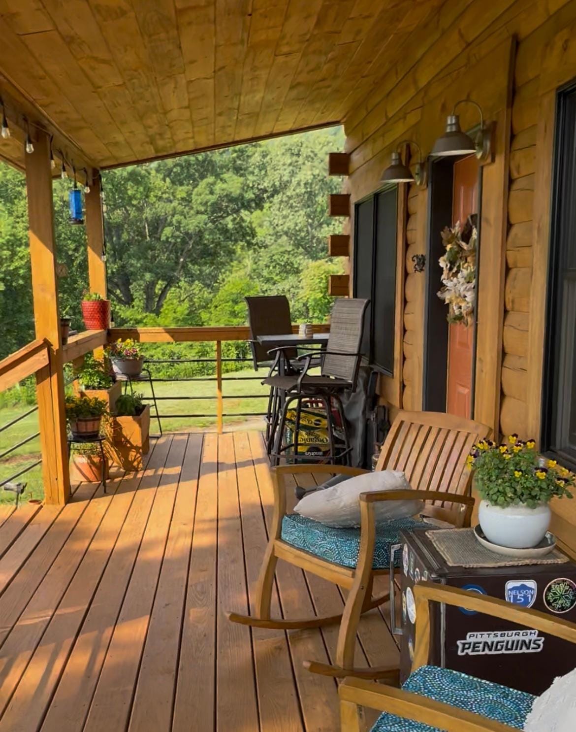 We enjoyed our stay at the cabin immensely!! The setting was perfect, so peaceful and quiet with all the nature sounds around!! The kitchen was very well stocked, bed was super comfy and the porch had all the chairs you could want.. I’d definitely recommend staying here if you love country life and don’t mind driving on some backroads to get there!