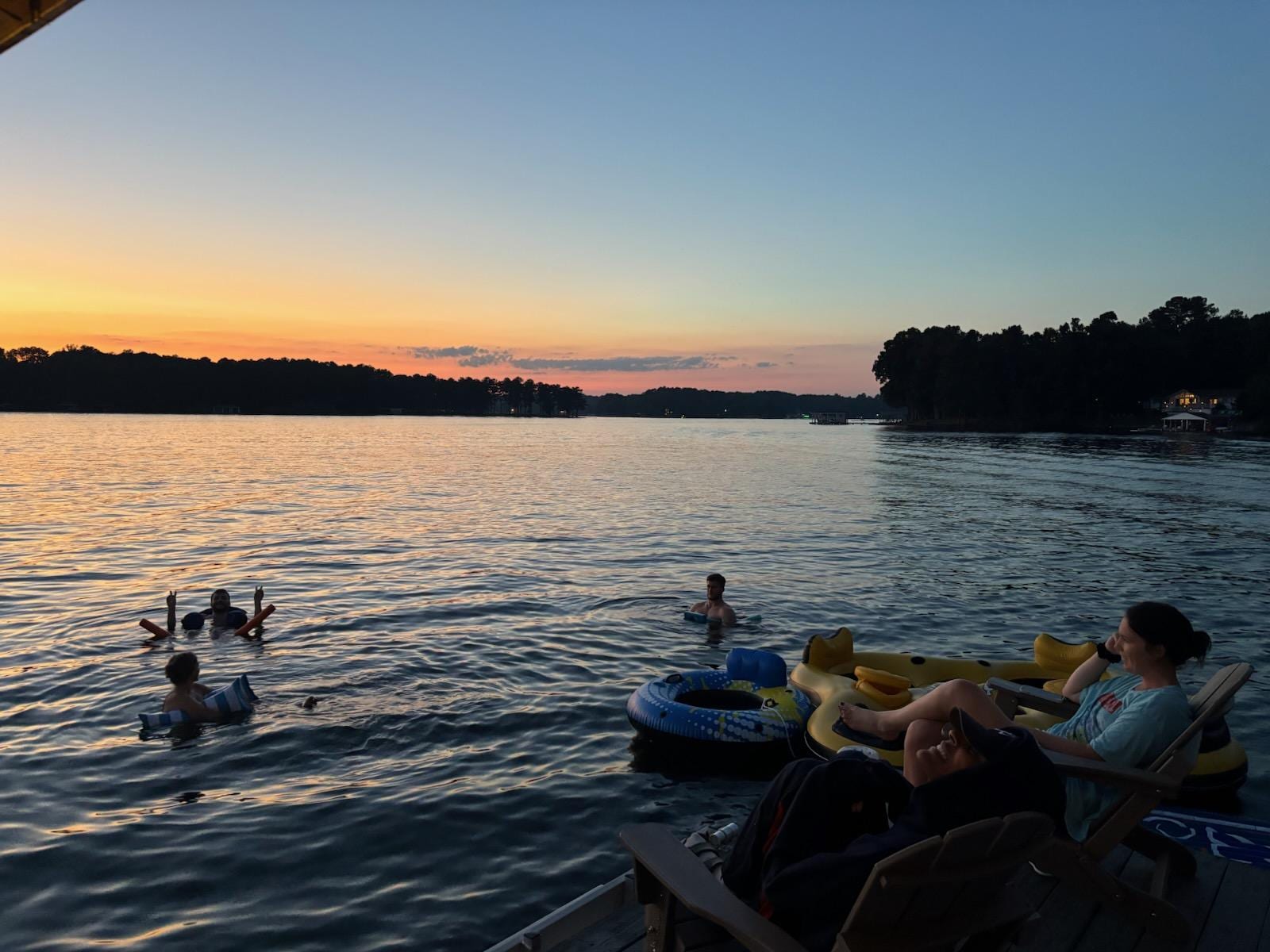 This BRAND NEW 3,400 square foot home has 6 bedrooms and 4 full bathrooms. There is plenty of room for large groups in this home! The vaulted ceilings on the main level immediately draw your focus through the open living room and kitchen to a wall of windows welcoming you straight out to the fully screened porch with cable rails and a panoramic view of the lake. This home has great views and there are often sightings of blue herons nearby! The boathouse/dock has plenty of room for spending time with your loved ones and enjoying the majestic sunsets that Lake Gaston has to offer. The property is equipped with 4 kayaks, a pedal boat, several types of floaties for lounging in the lake, and plenty of fishing poles. The house faces west, which makes for beautiful sunsets in all seasons.