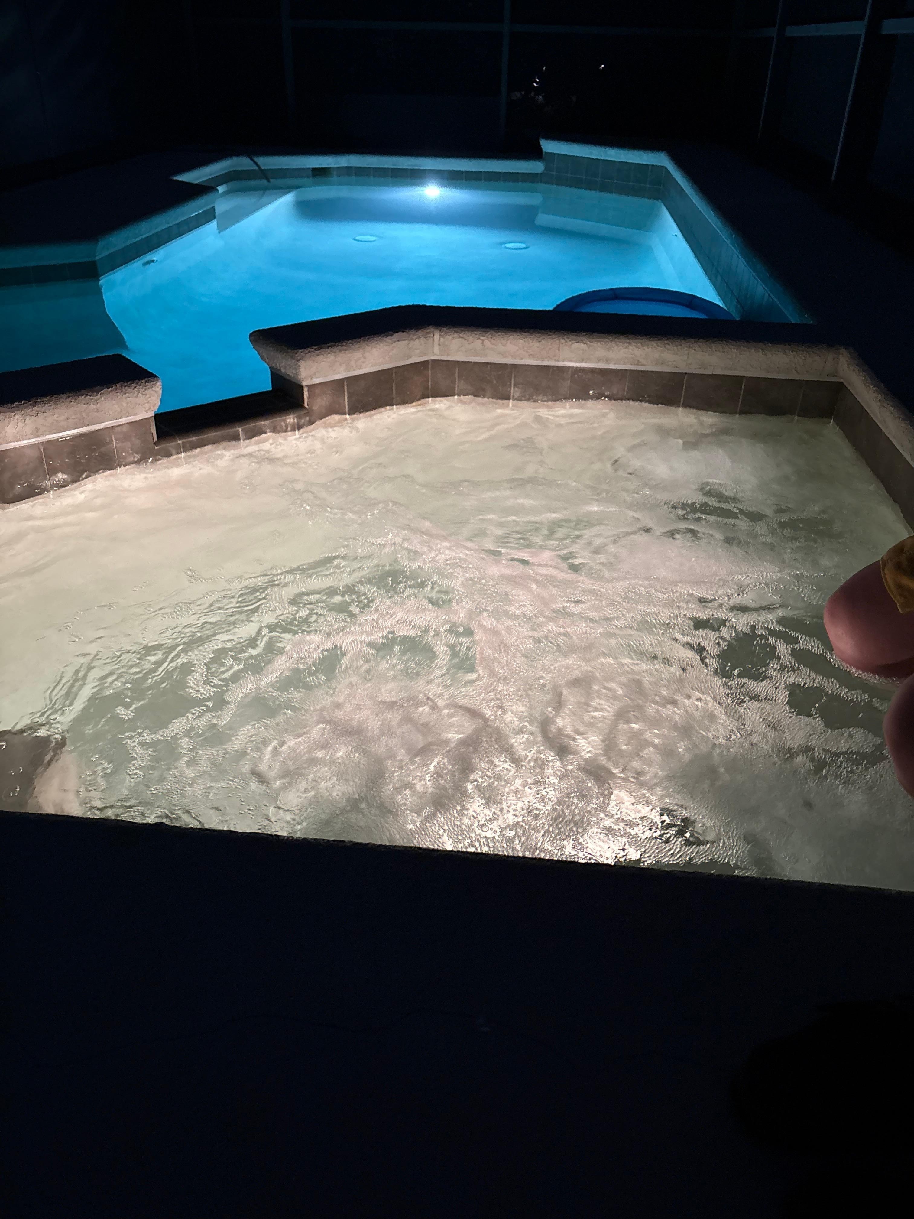 The pool area is enclosed by a removable safety fence for child safety and includes a generously sized pool and a relaxing Jacuzzi spa. Gas BBQ is available.