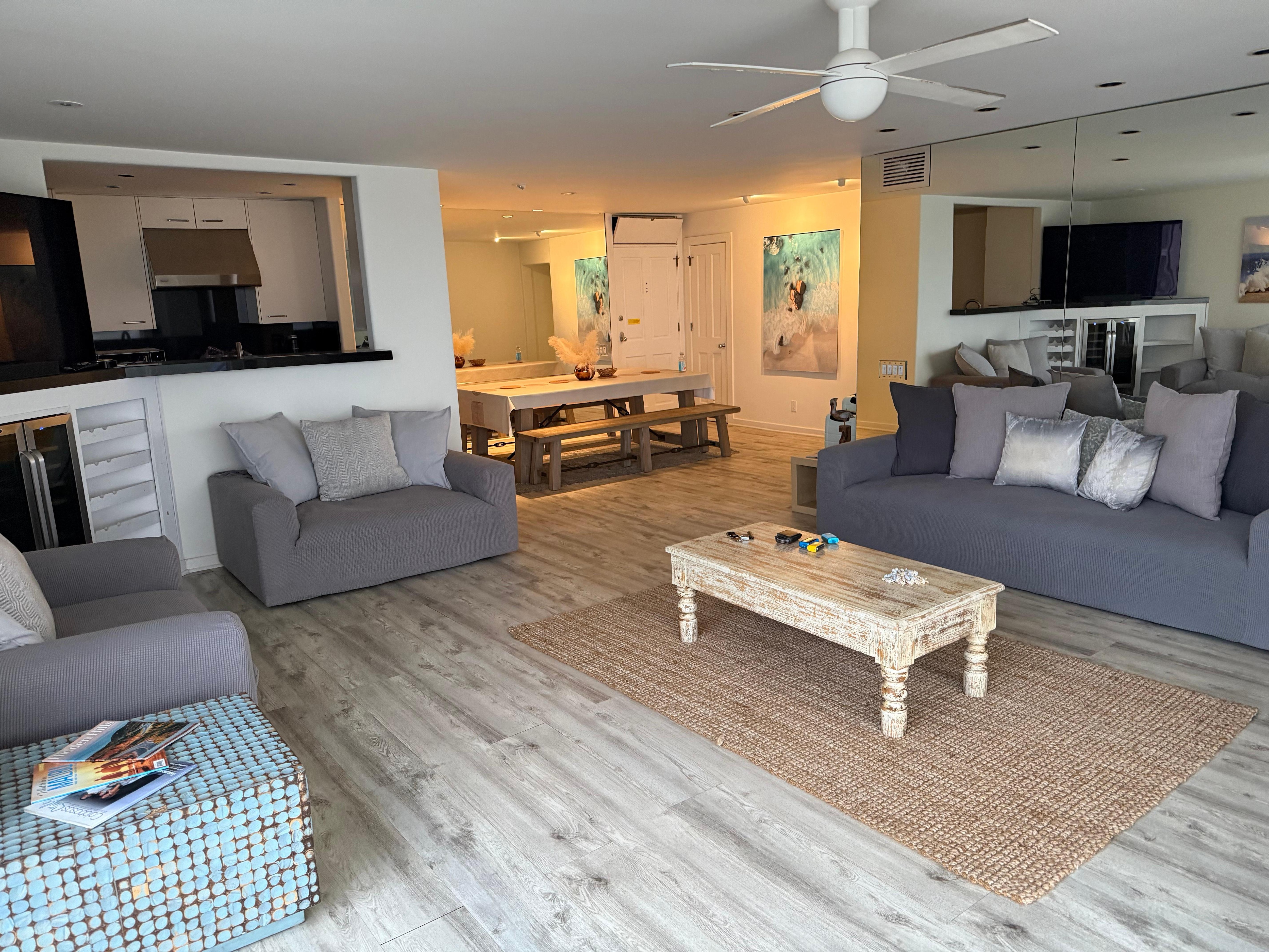 This spacious condo includes a bedroom with a stunning ocean view, a modern bathroom, and a large living and dining area with plenty of room to relax. The kitchen is fully equipped with modern amenities and provides the perfect space to cook meals during your stay.