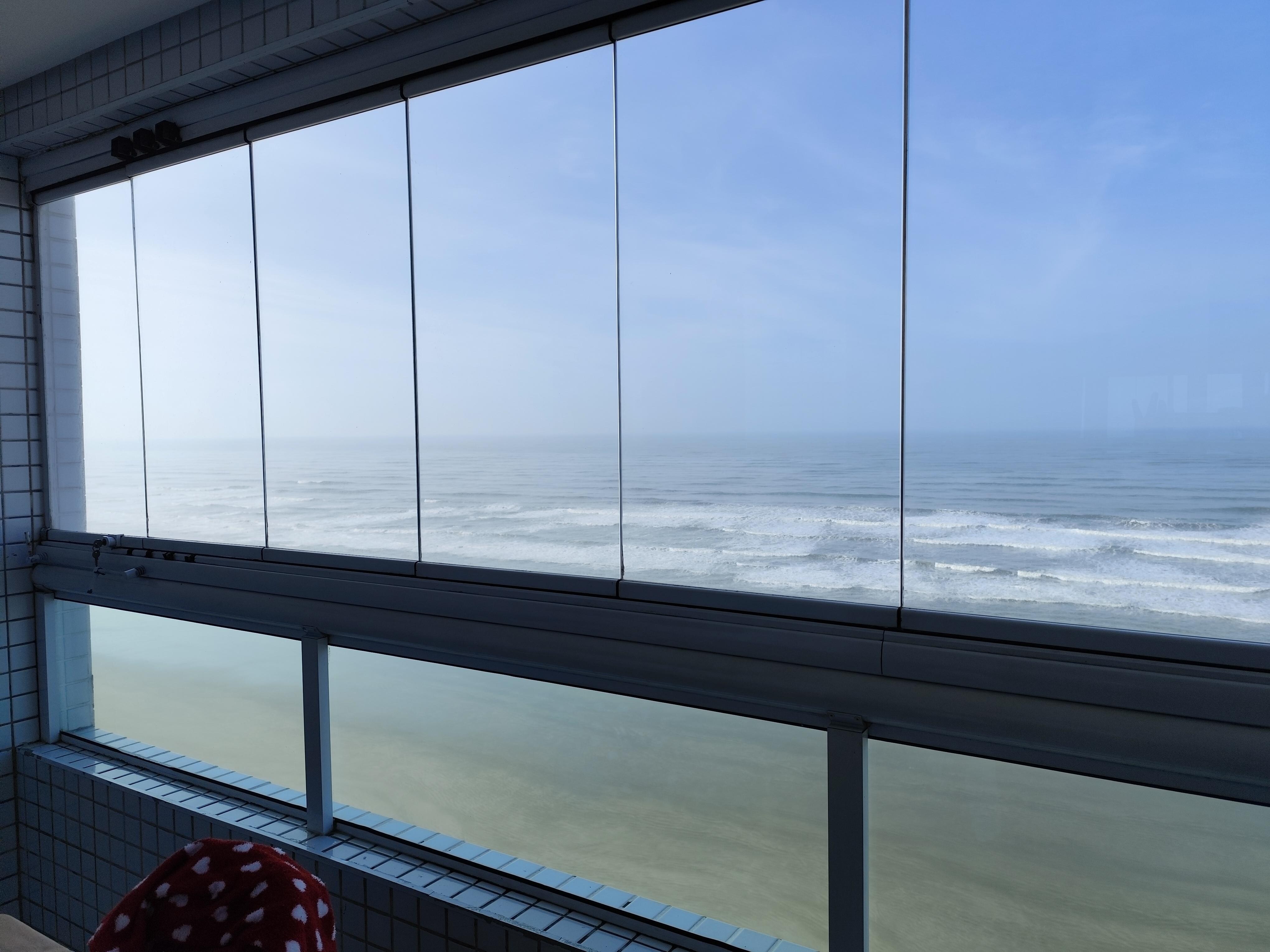 Apt. in the street of the beach, beautiful panoramic view from all windows, situated on the top floor, providing a privileged view, well ventilated place, 2 dormitt., living room, kitchen, pantry, 2wc and lav, and balcony, all rooms with sea view. The property has all the basic furniture and utensils, sufficient for a quiet and comfortable stay. Building with 2 lifts, garage, concierge24 hrs. Got off the elevator, crossed the street, is stepping