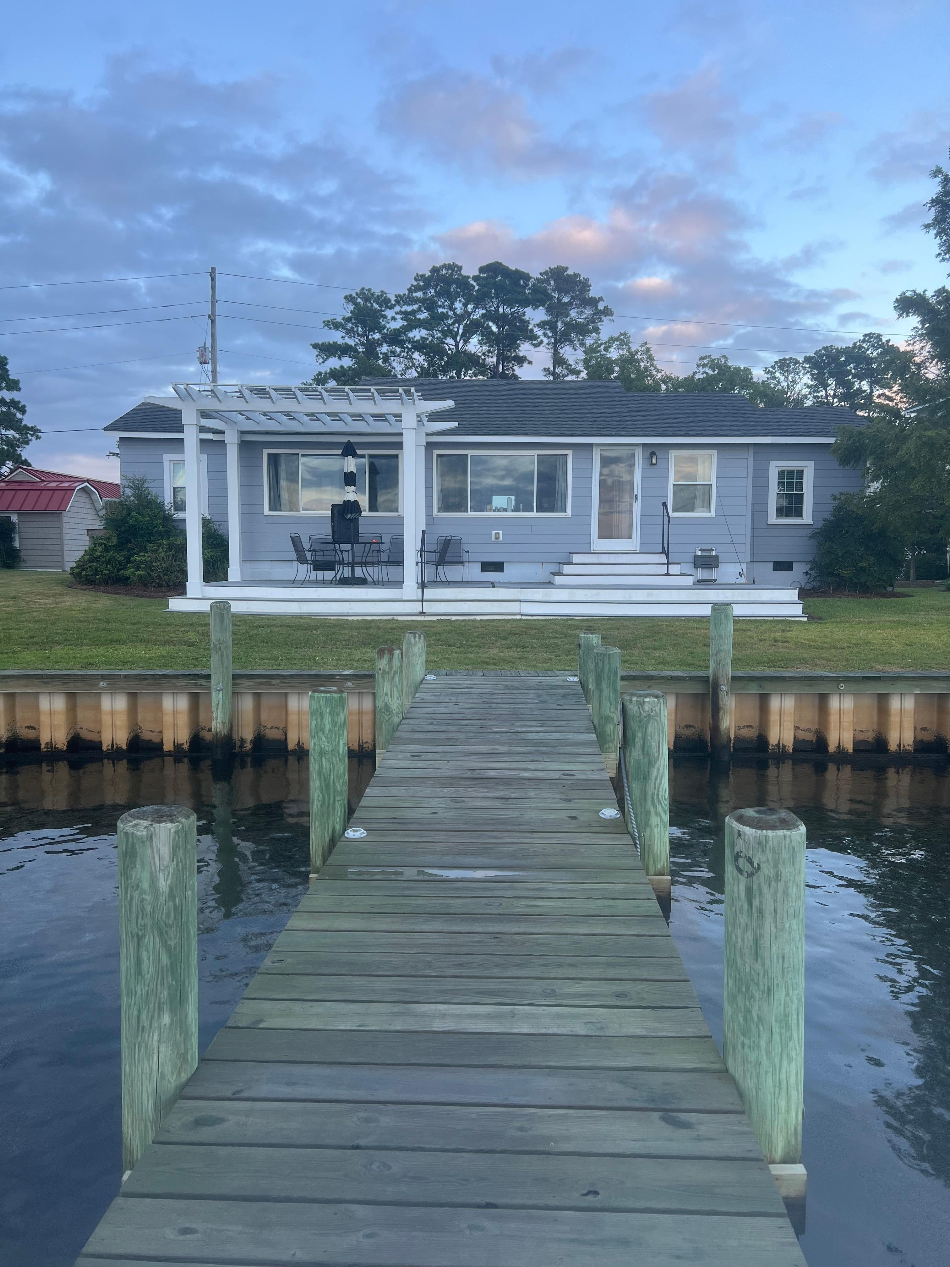 This is a really charming cottage with a great location, not far from the main town, which offers plenty of shopping and dining options. We stayed so my family could enjoy fishing off the dock. It had built-in seating, plenty of room to move around, and was just steps from the home. Watching the mullet jumping right out of the water is awesome! There is a nice crab pot in the shed if you plan on catching blue crab, which we did, and had a few for supper one night. Note that you will need to bring your own crab cracker to get into the claws! If you're looking for fresh bait, Ginn's Seafood, Tackle & Quickstop was recommended to us.As a few have noted, the AC is a bit difficult to manage on very hot days. You will need to close the curtains overlooking the water to keep the sun from overheating the home, and use the fans strategically to keep the home cool. I would recommend a window AC unit be added to the second bedroom.The house is very well stocked with everything you may need. There is also a basic charcoal grill available and Roku on the TV to log in to your Hulu or Netflix accounts. We truly enjoyed our stay and thank you for sharing your home with others to enjoy!