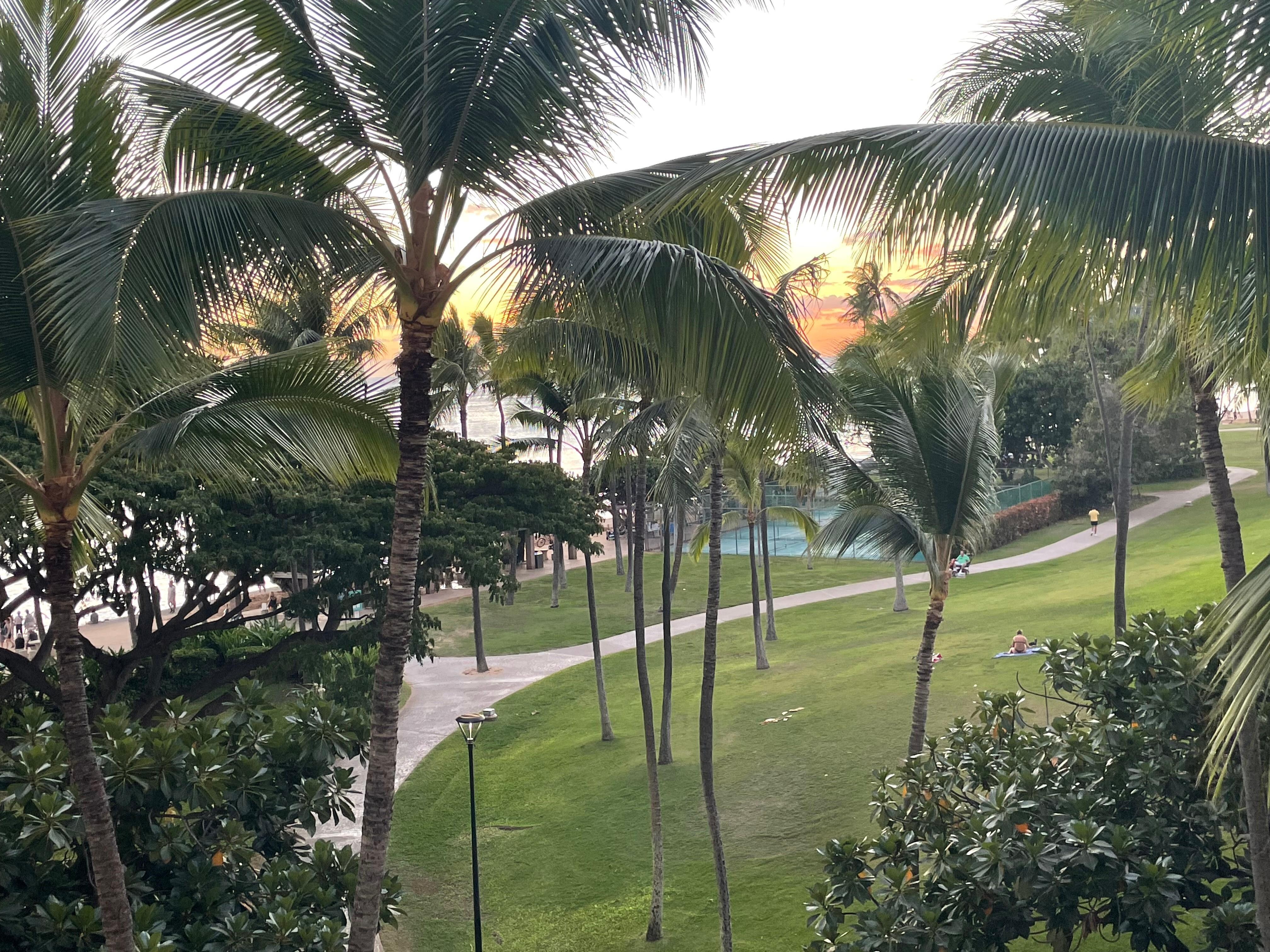 – Access to private enclosed lanai with gorgeous park and partial ocean views (plus seating/dining for 2 and tower fan)
