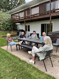 Plenty of space for the whole family (or two or three!) at 3400 square feet of newly renovated and decorated lake home living. Three bedrooms up plus two down, a huge game room with a pool table and bar, a childrens’ play area, office, indoor and outdoor dining, a brand new hot tub and Smart TV’s are just some of the amenities you will find here. Enjoy quality bed linens, crisp cotton sheets, natural soaps and cleaning products. The kitchen is fully stocked with cookware, dishes, cooking oils and spices. Bathrooms are stocked with plenty of towels, and natural bath soaps and hair products. There is a plentiful amount of toys and children’s supplies to ensure those most important little ones are comfortable and entertained (which means parents are happy and relaxed!) Adults, enjoy your morning coffee on the large outdoor deck, utilize the sprawling lawn that has shaded seating, a gas grill and large fire pit, a dining table and sun loungers. Have a glass of wine at sunset on the Adirondack chairs. Private lake access is accessible via 20 steps down from the yard where you can enjoy swimming and fishing off the dock, kayaking, stand up paddle boarding or docking your own boat with us. We very much look forward to having you!