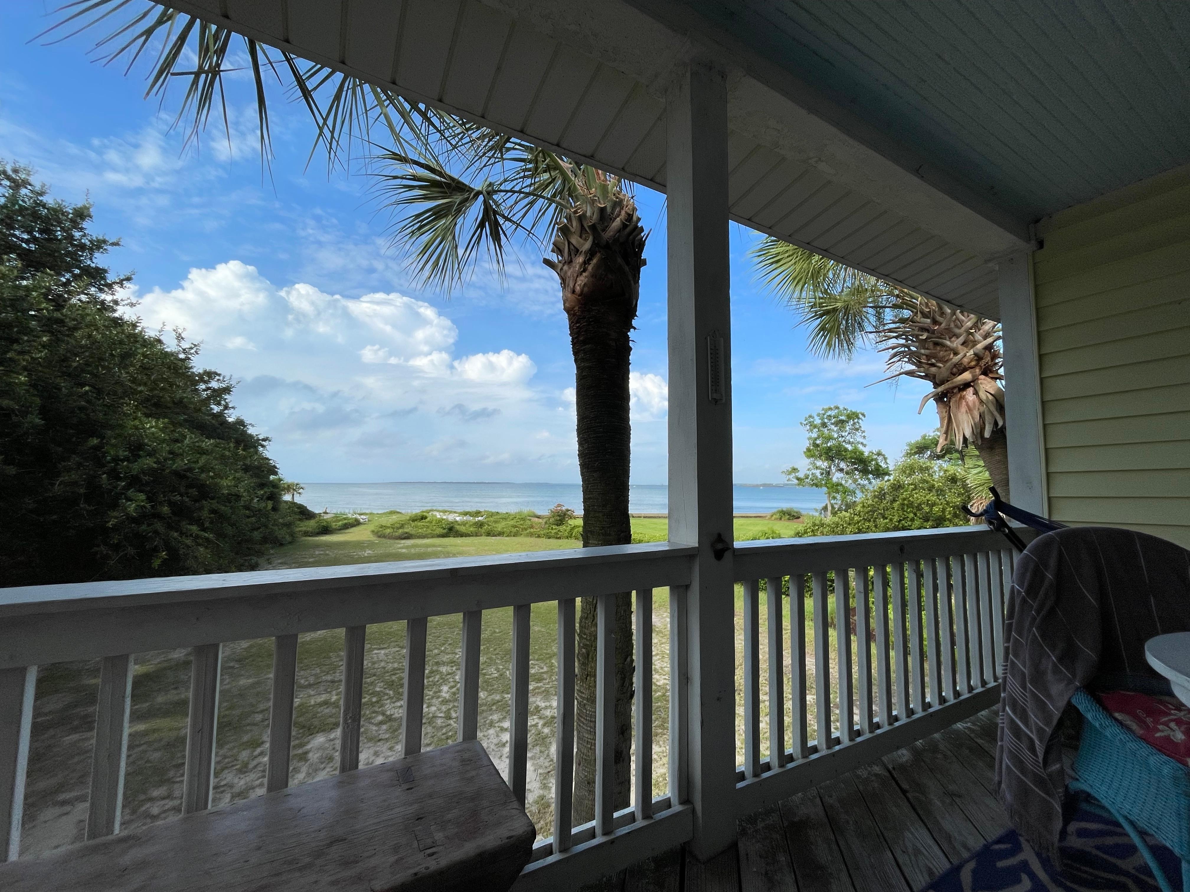 Our 2nd floor unit has the best views on Sullivans Island while optimizing privacy. Watch large vessels that enter and exit the harbor pass silently by the front yard. Dolphins can be seen swimming by most days. And look across the water to Fort Sumter- where the first shots of the Civil War were fired. The views are truly magical. The beach is lovely and generally only occupied by the small number of residents and visitors at the western end of the island. The cottage is situated right next door to historic Fort Moultrie which has many acres of lightly used grounds and paths that make for what seems like a private park. The beach going east is undeveloped for over a mile as the maritime forest and trails make for a mostly barren area. Walking west of the cottage you will see historic island homes, views of Ft. Sumter, downtown Charleston and the Ravenel Bridge. This quiet street and peaceful space is perfectly suited for young families and empty nesters. This is your opportunity to enjoy one of the few beachfront condo rentals on Sullivan's Island.