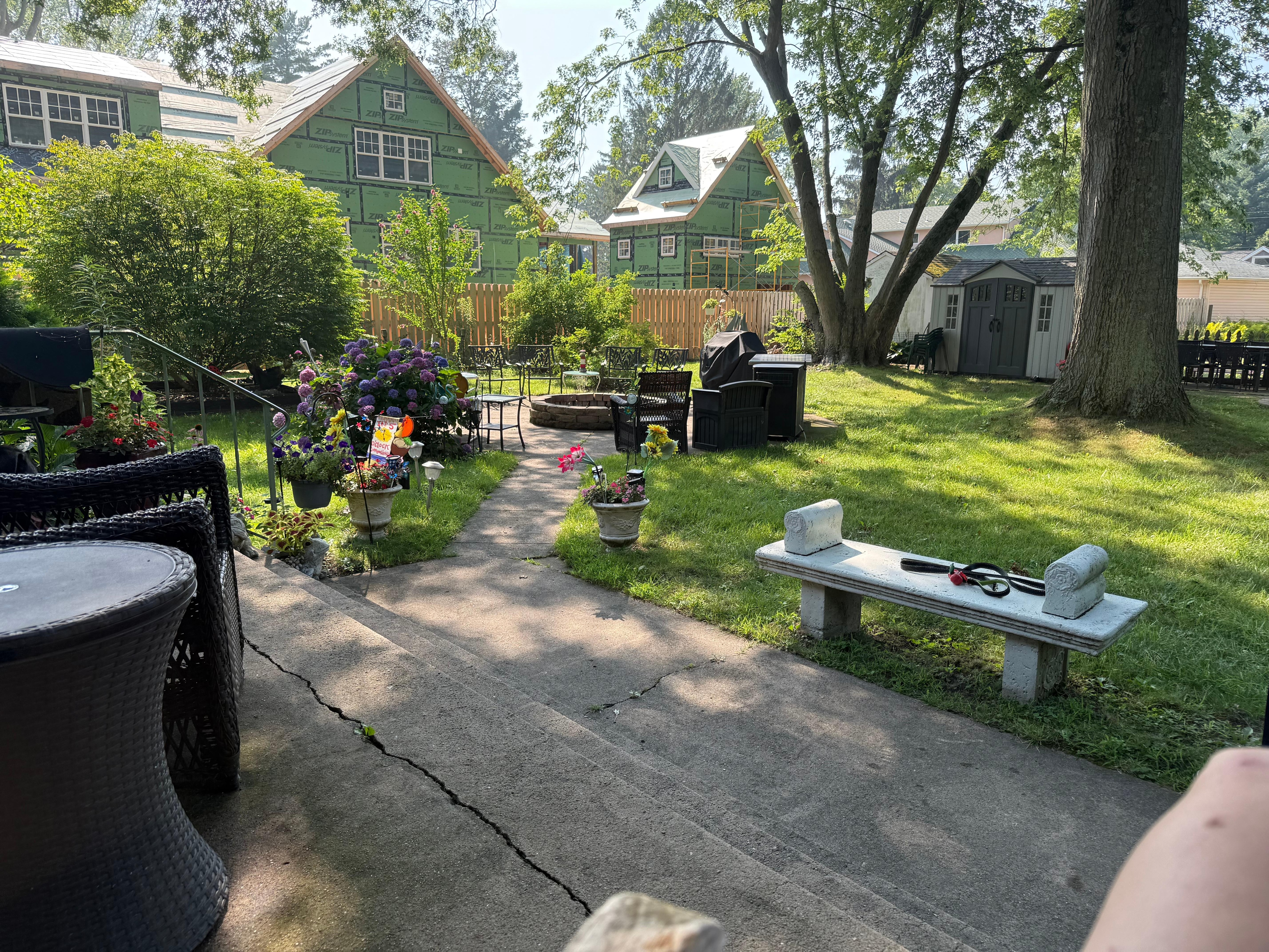 Cozy pet friendly home just 1 block to Lake Michigan and private newly built descending staircase with sitting benchs overlooking Lake Michigan for unbelievable sunset vistas. Large oak, maple, mulberry, and pine trees surround a large fully fenced in yard with a large fire pit sitting circle in yard. A cottage vacation rental for small and large groups alike. Two bedroom rental unit comfortable for up to 6 people. Option of renting both the rental unit/owner's unit for larger family/friend groupings if stay one week. Each cottage unit has it's own bathroom (1), kitchen, dining and living room, and with 2 bedrooms in each. Rental cottage unit also has 2 sofa beds.