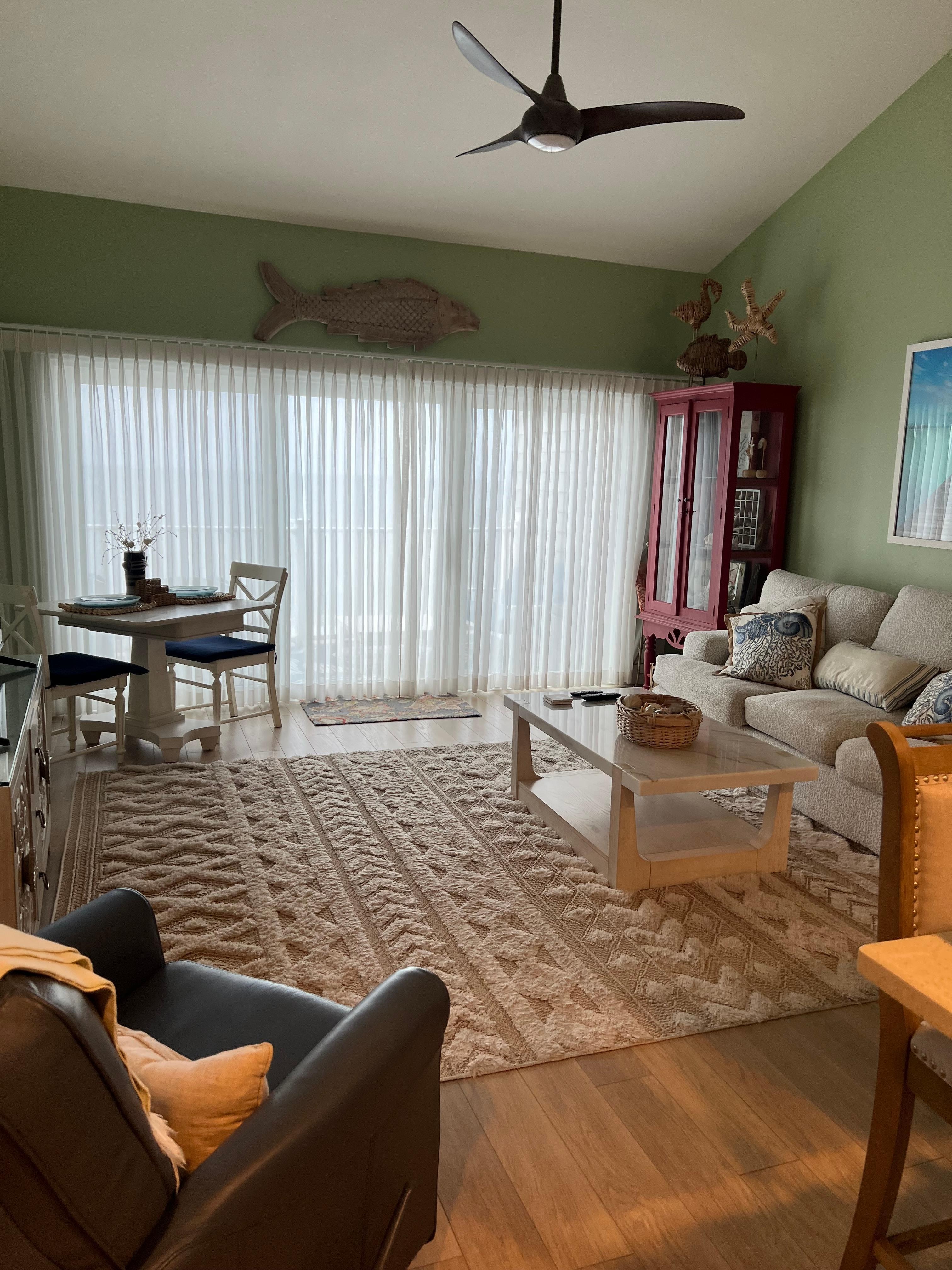 This particular condo was beautiful with an amazing ocean view right on the beach. A perfect getaway for a relaxing time together with your significant other. Condo decor was a beach vibe which added to the serenity. A short minute walk from the condo to having your feet in the sand was all that was needed.