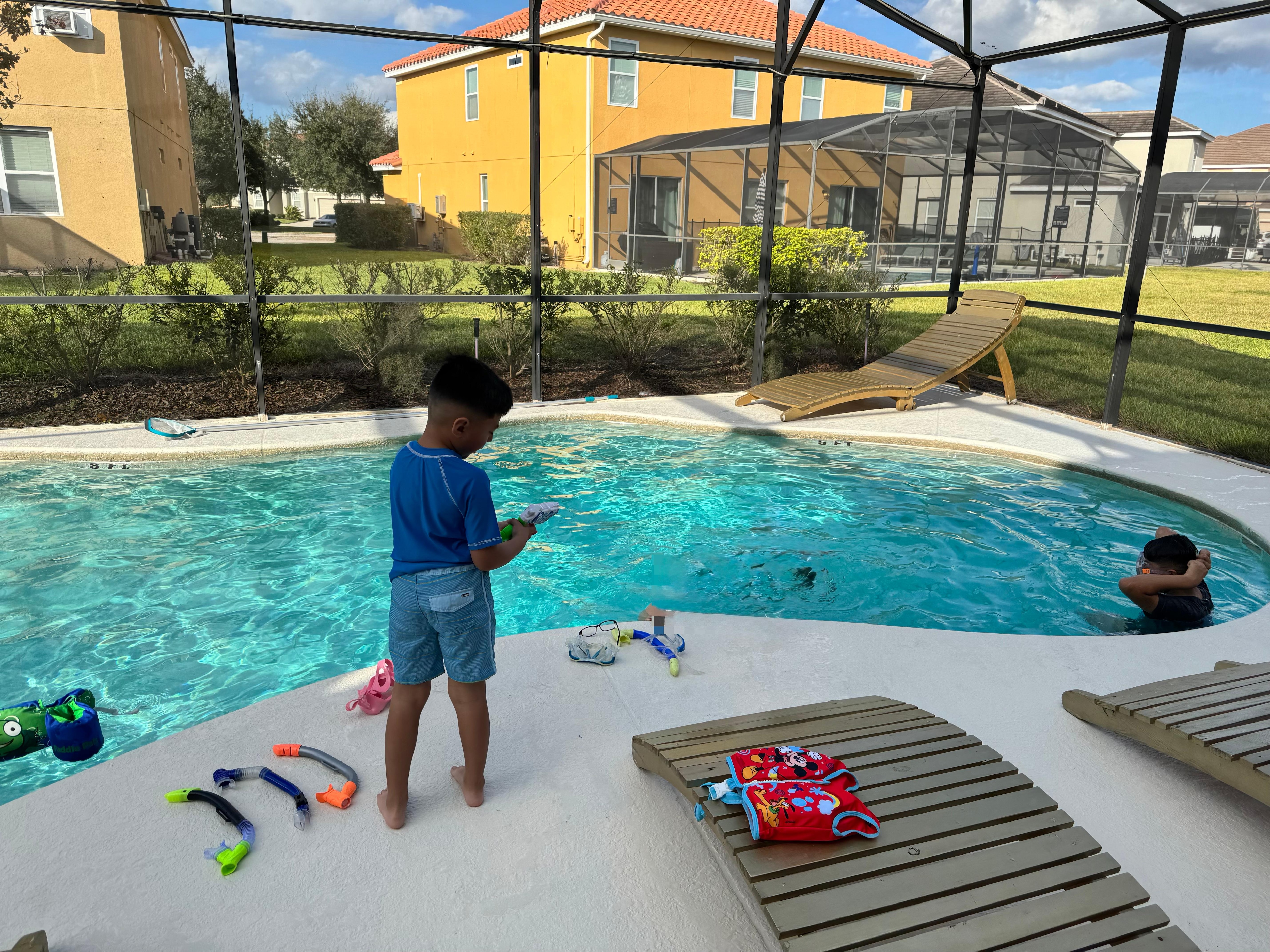 This vacation villa is located in the charming Solterra Resort, just 15 mins from the Orlando-themed parks, including Disney World, and the luscious golf courses of Reunion and Champions Gate. Additionally, guests have FREE ACCESS to the 5,600 square foot clubhouse inside the Solterra resort community, featuring a fitness center, a resort-style pool with a water slide, a lazy river, pool side cabanas, food and beverage services, tennis courts, and so many more fun activities for the young and the young-at-heart! There is a Target supermarket, CVS Pharmacy, Multiple restaurants, banks and other services approximately 3 miles from the home.