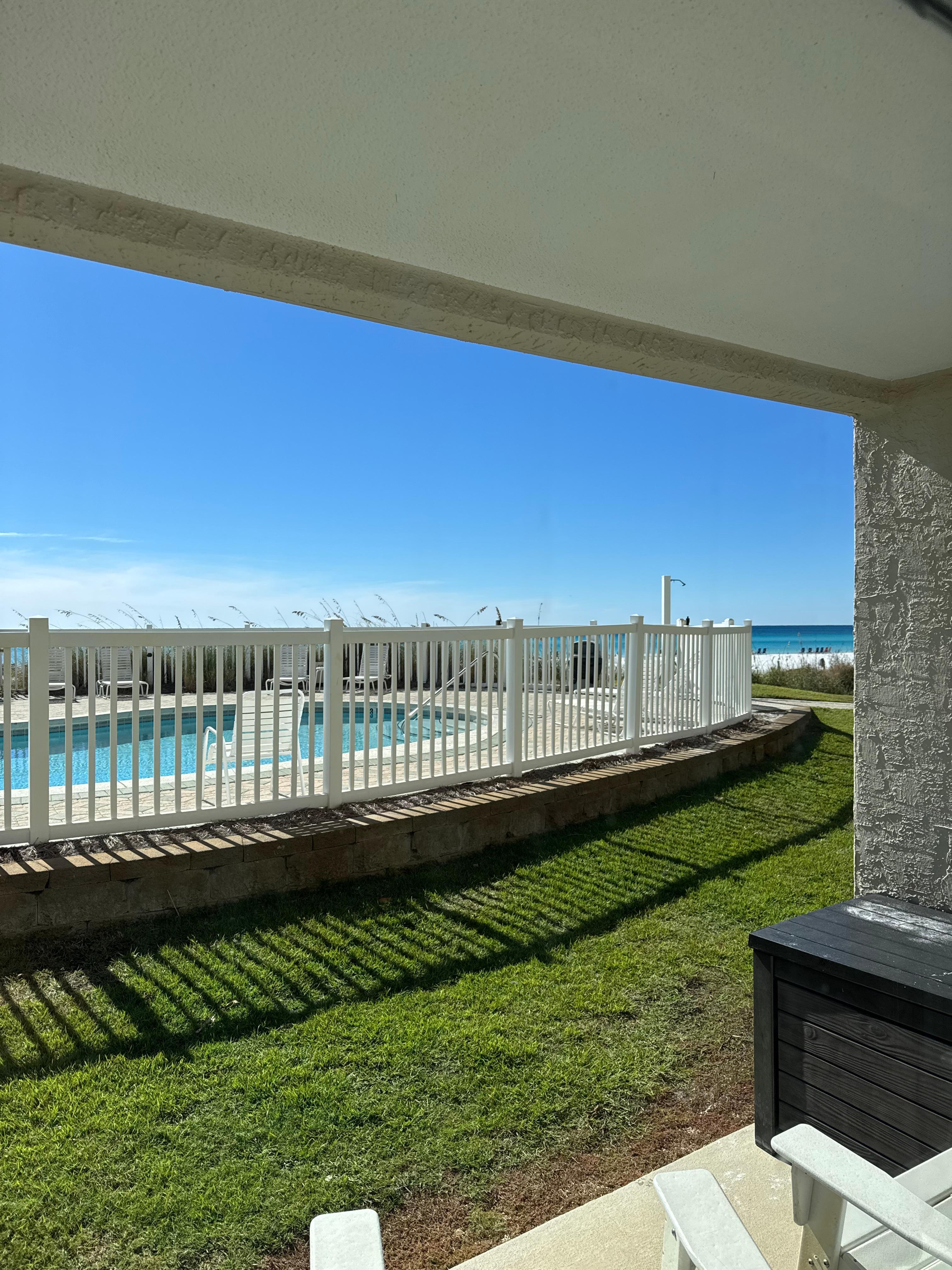 The first floor location allows you to walk right in, no elevators, stairs or roads to cross… then walkout to your private patio facing the pool and the Emerald Green waters of the Gulf of Mexico… The beach is your backyard and playground! Additionally, this is the ONLY first floor unit with TWO FULL BATHROOMS and TWO FULL OVER FULL hallway bunks.