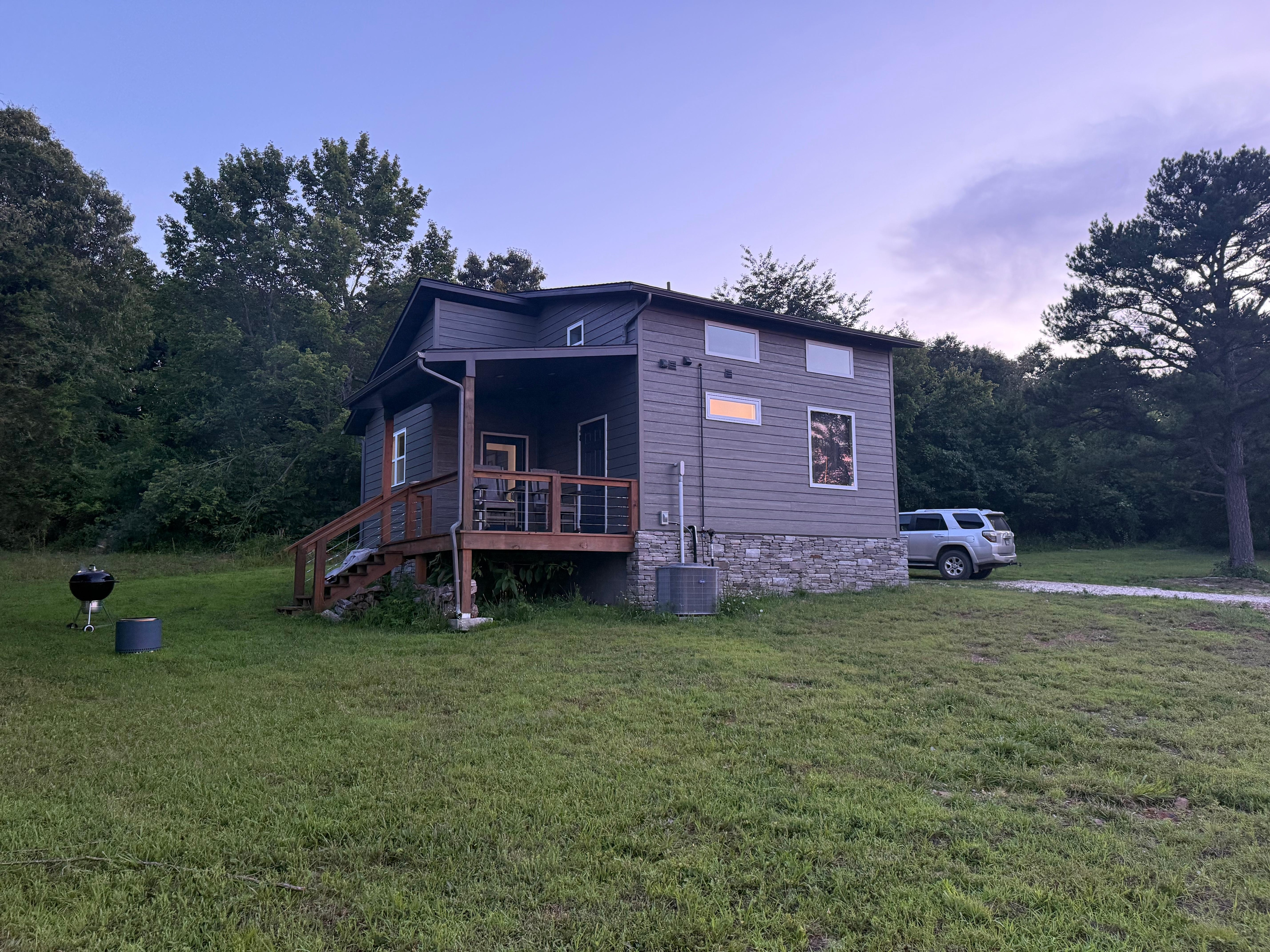 We had an amazing stay at this modern cabin! The location was perfect—peaceful and secluded, yet still close to everything we needed. The cabin itself was thoughtfully designed with all the essentials: a grill, fire pit, washer and dryer, and a fully equipped kitchen. The loft was a huge hit with the kids—cozy, fun, and just the right size for them to feel like they had their own space. Other reviews stated concerns for the age of kids using the loft, which is high, but our kids absolutely loved it and we didn’t any problems with it! I would just say “know your kids” and set ground rules. One of our favorite parts was relaxing on the deck in the mornings, watching the sunrise—it was absolutely beautiful. Highly recommend for families looking for a comfortable and scenic getaway!