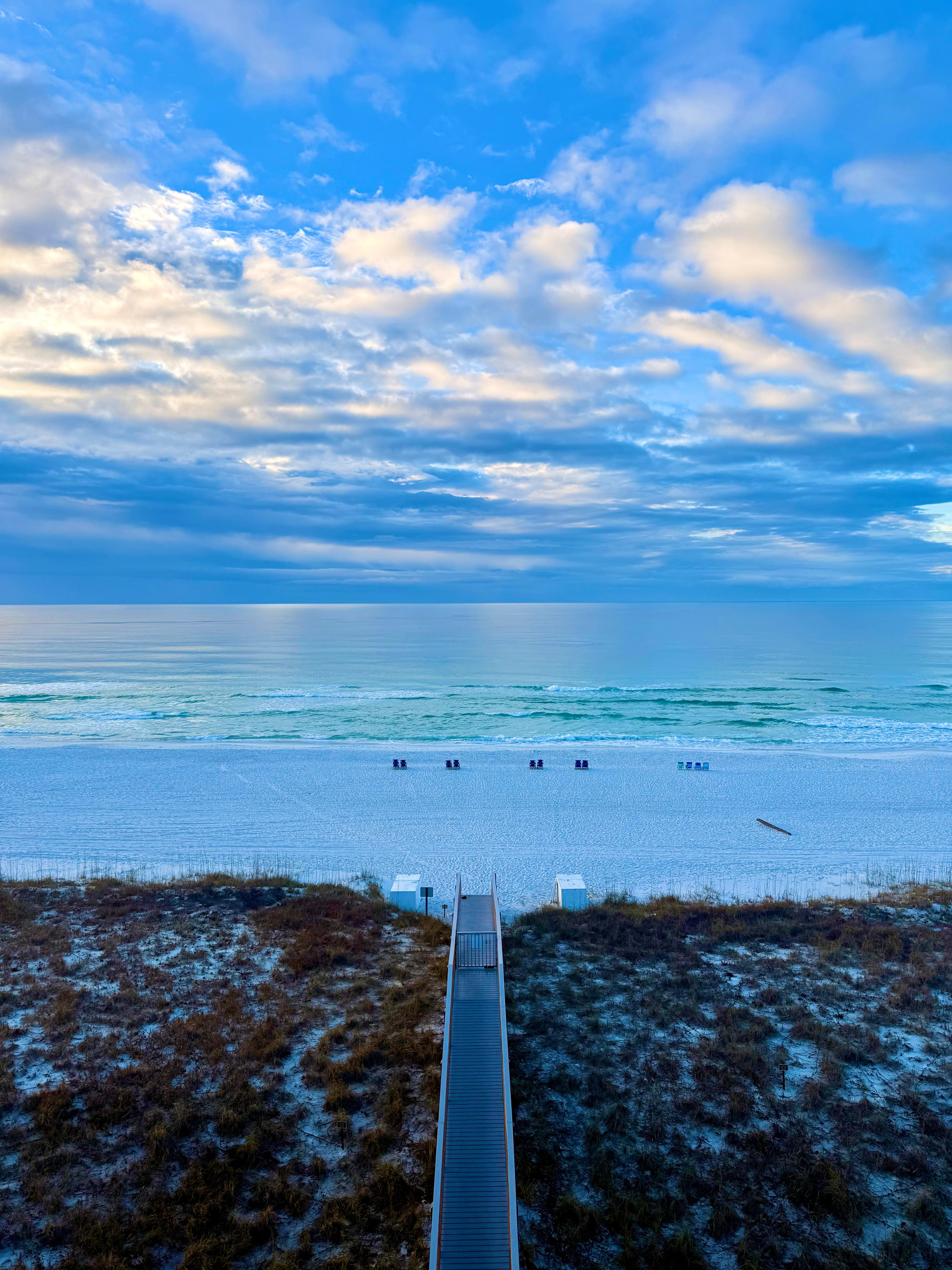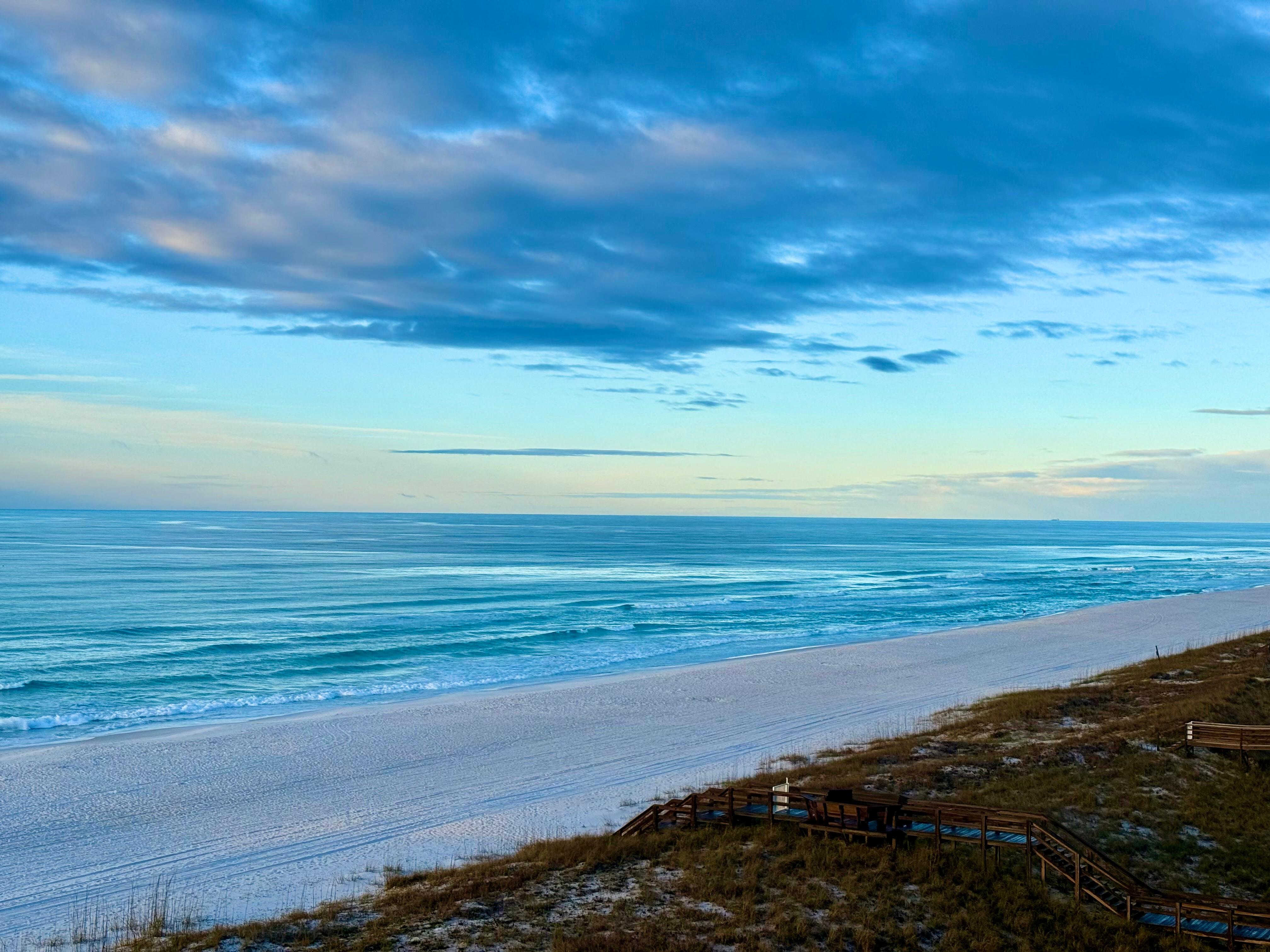Stunning, and spacious 2 bedroom, 2 bath gulf front beach condo. Escape to the hypnotic lure of beach life in a quality furnished and well-appointed tropical get-away with the comforts of home. Expansive glass doors and balconies overlook the renowned north Florida ‘sugar white’ sands and emerald Gulf waters. Inspiring uncrowded panoramic views of ever-changing nature and beach life. Beachside outdoor pool. King bed in master with ensuite bathroom. Two twin beds in second bedroom with ensuite bathroom. Kitchen is well equipped and open to both dining and living room. Attractive tile throughout. Large washer and dryer in unit. Cable HDTV, Blu-ray DVD streaming in living room. HDTV in master. Free Wi-Fi. Elevator. Pool with lounges, tables, bathrooms, outdoor shower.