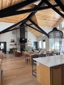 Apéro has vaulted ceilings in every room and has a bit of a European lodge feeling to it. We chose to leverage the 4th bedroom as a game room for the kids so they can have their own space and the guests love it!