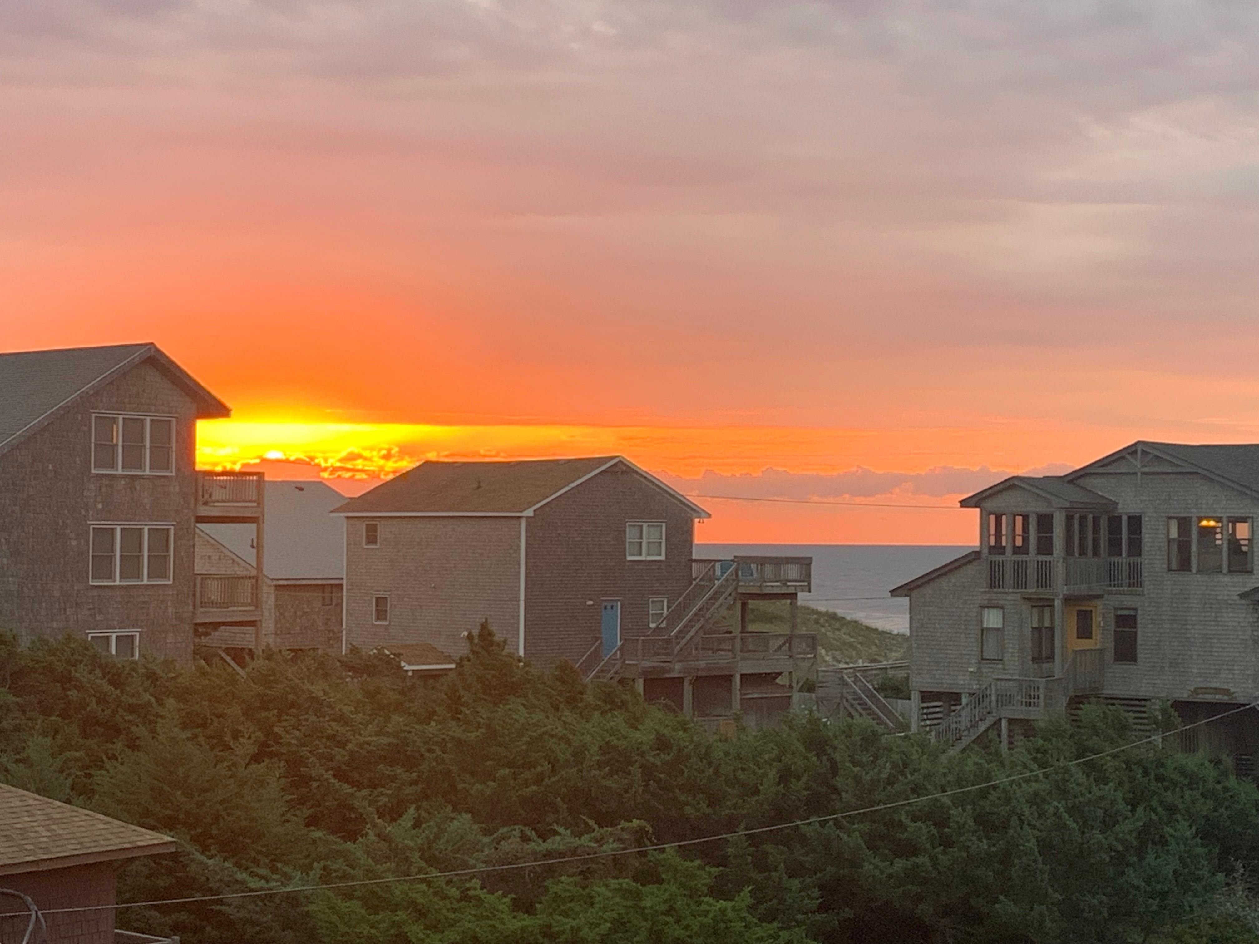 OCEANSIDE Hatteras — Sand Rd. — Not only do you have a clear view of the ocean from SEE BLUE SEA, but gorgeous sound vistas enhance the experience of staying in this charming three-bedroom/two-full- and one-half-bath home located just a short walk from the boardwalk beach access. Painted a vibrant blue, your family will be inspired to match the joyful seaside vibe as you settle in to create those memorable vacation moments.
