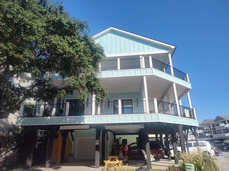 Ocean Lakes-new built house w/ oversized deck on corner lot-4 blocks from beach.Family Tides was built in October 2023 with 5 bedroom and 3.5 baths it is perfect for any and all getaways! It is a stilted house on Coral Drive in Ocean Lakes. MH15B is the site number and this corner lot is walking distance (only 4 blocks) from the ocean, playgrounds, basketball courts and all of the many Ocean Lakes amenities