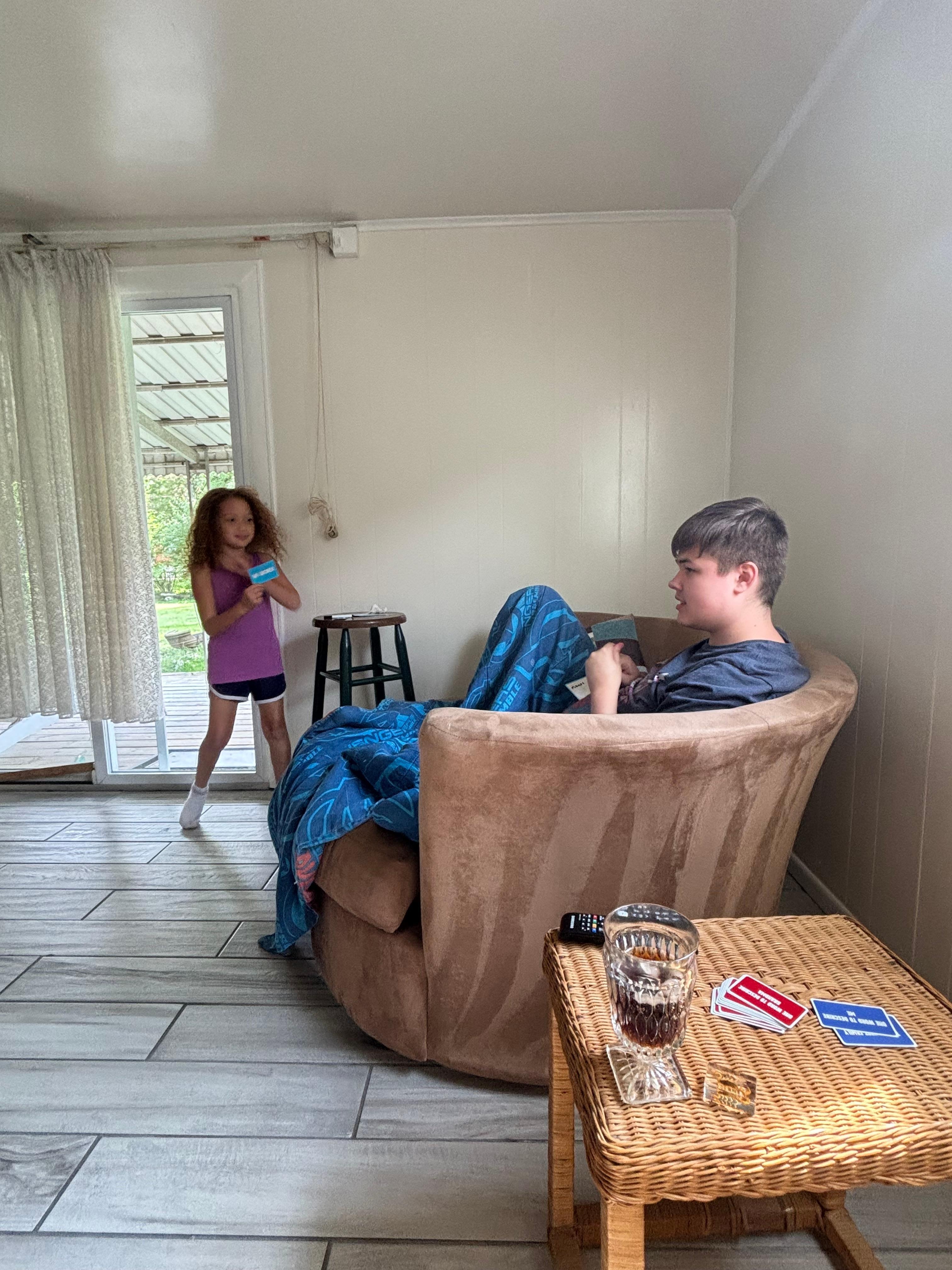 The house had a lot of space and separation for sleeping and TV viewing & game playing. The refrigerator was spacious and a great ice maker. We do wish there had been a coffee maker, extra blankets, dish cloths and extra kitchen trash bags. The ceiling fans definitely need to be updated as they were extremely loud/rattling. And, the A/C vents in the dining room and living room are filthy. We did enjoy sitting on front and back porches.