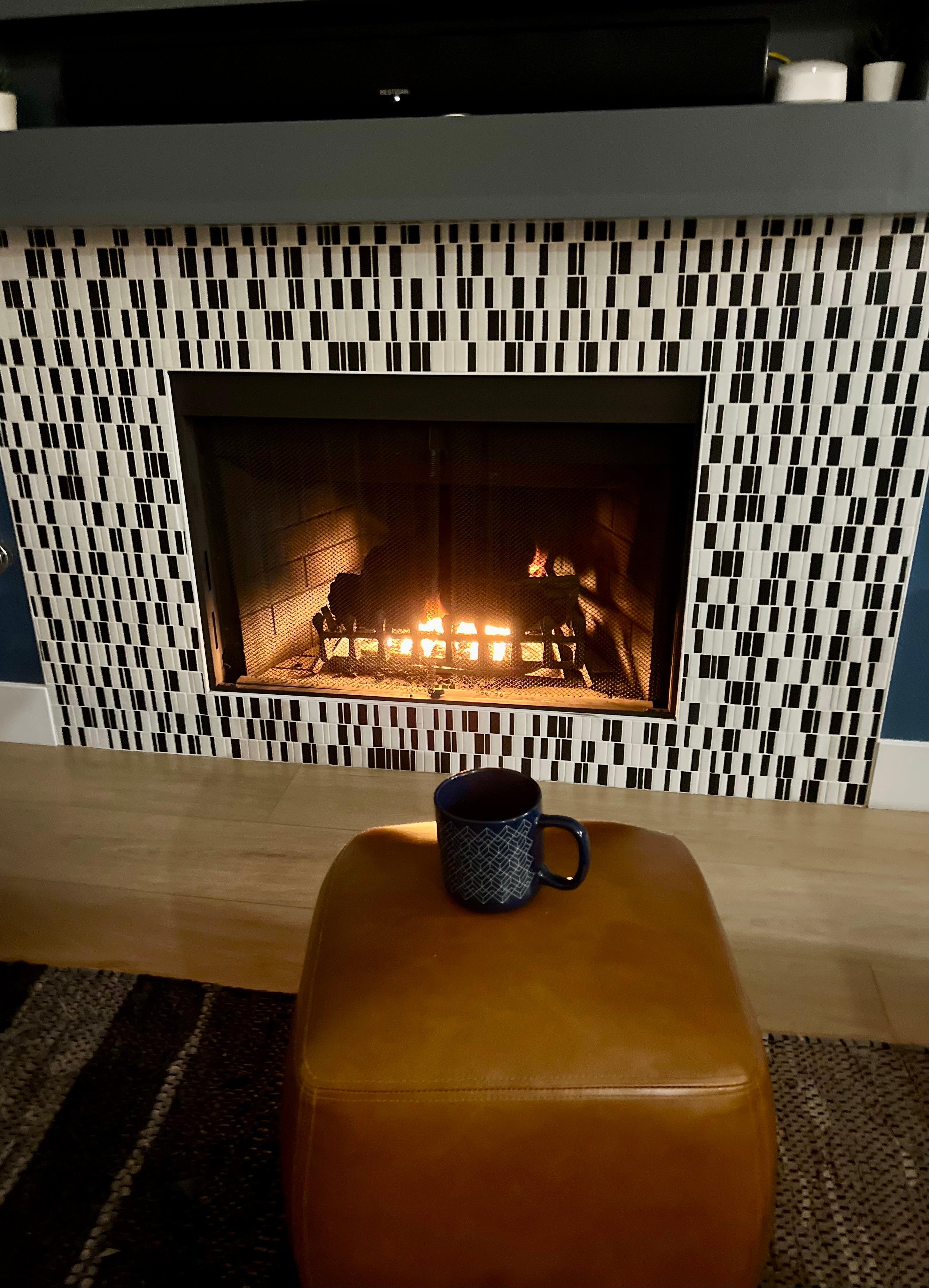 The living area has plush seating for your whole party. It's a perfect spot to watch your favorite movies, play games, or cozy up with a fire.
