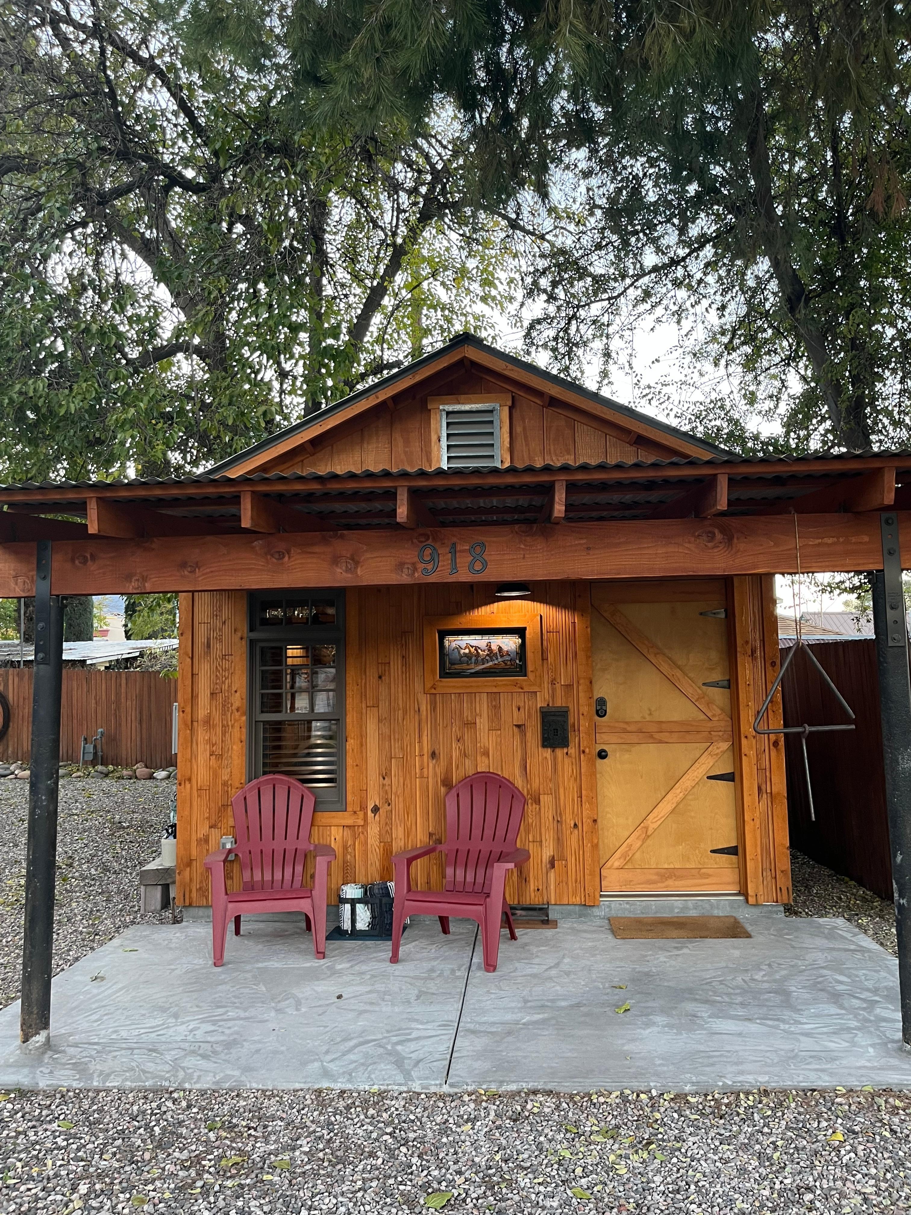 Historic Cottonwood with Wineries, restaurants and entertainment. The Stable Master Cabin is perfect spot for 2 guest. It has the rustic charm of a country cabin with the modern amenities and lot of history with this property. The open beam ceiling, King size bed, sitting area, coffee bar, microwave & mini fridge are all you need to enjoy your stay. Pima cotton luxury bedding and Spa quality toiletry. The rustic natural wood smell might not be suitable for sensitive guest .EV charging station only 300 yards for the cabin. Newly completed October 2023. The cabin does not have a kitchen and is like a hotel room.