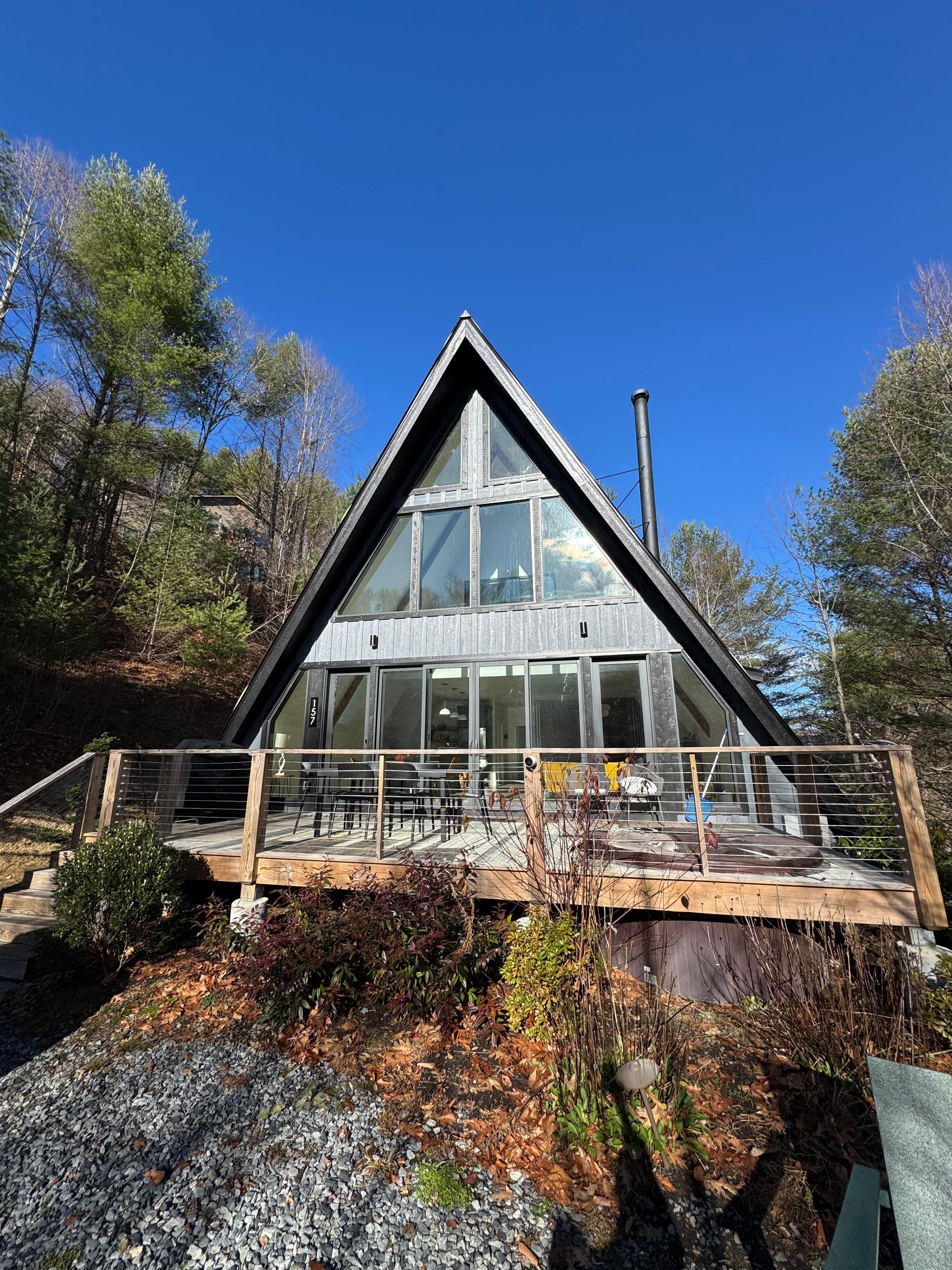 This cozy A Frame cabin is the perfect setting for your next visit to the High Country. Enjoy a comfortable and cozy living area with a hanging woodburning fireplace, or have a cup of coffee on the large deck with an in-deck hot tub. Explore the creeks and trails on the 12-acre property. Relax in the evening by the fire pit, and enjoy s'mores with your loved ones.