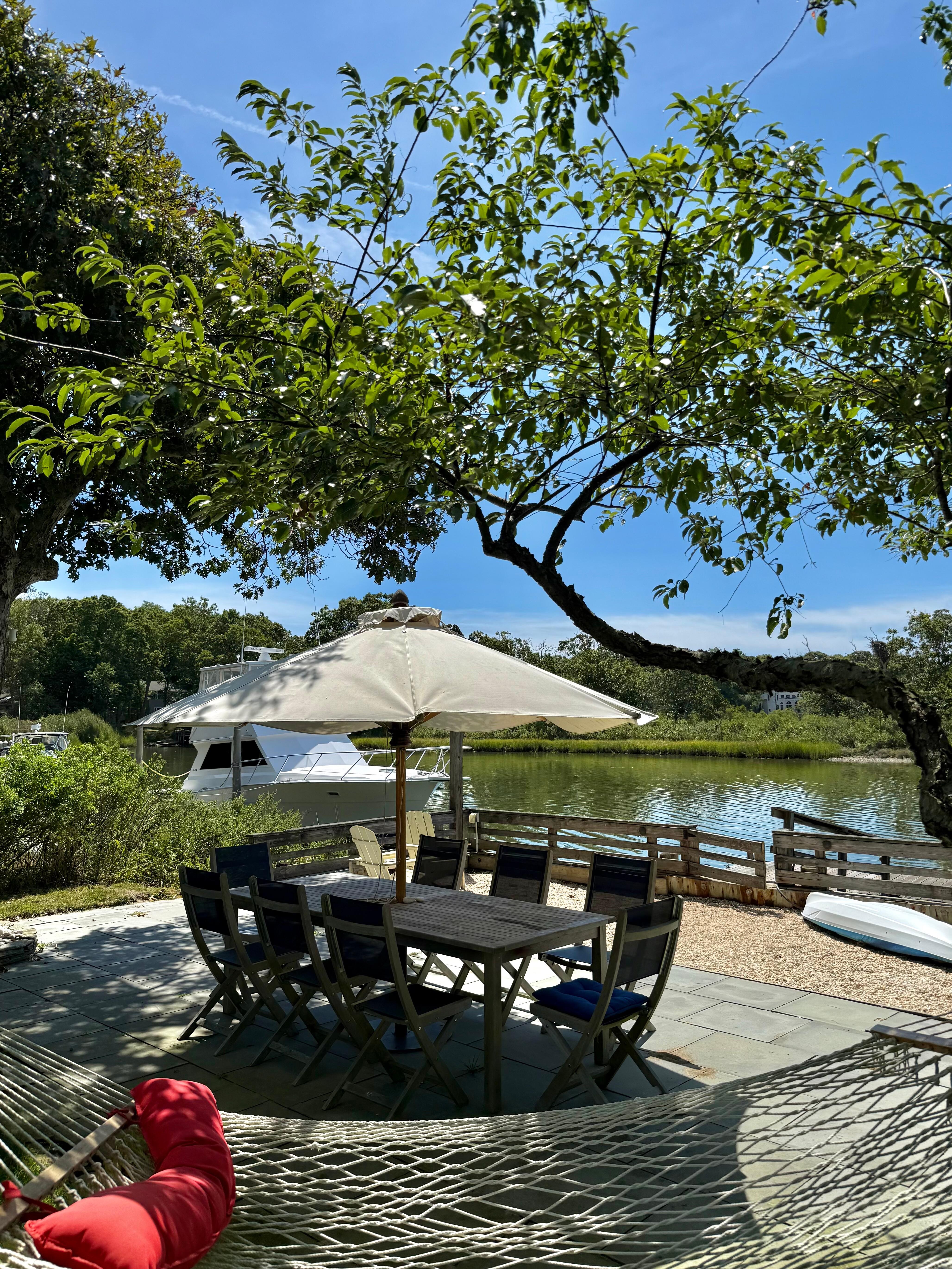 This 4-bedroom waterfront home is the perfect family getaway. Located in a small beach community between Southampton and Sag Harbor, it is surrounded by water - from the dining room you look right out onto a serene lake, from the first floor you can see both lake and the beach. Who needs a pool when you are only a few steps away from a well-maintained bay beach with marked swim area and a swim platform and also an easy 10-15 minute drive away from all the major beaches from Southampton to Watermill and Sag Harbor.