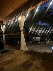 The Hill Country Cottage is truly a couple’s paradise. Inside, rest in the luxurious king-size bed, cuddle up in front of the stunning see-through fireplace and enjoy all of the comforts of a full-size living room with plush, comfy furniture. A large bathroom features a walk-in shower with Rain Shower Head.