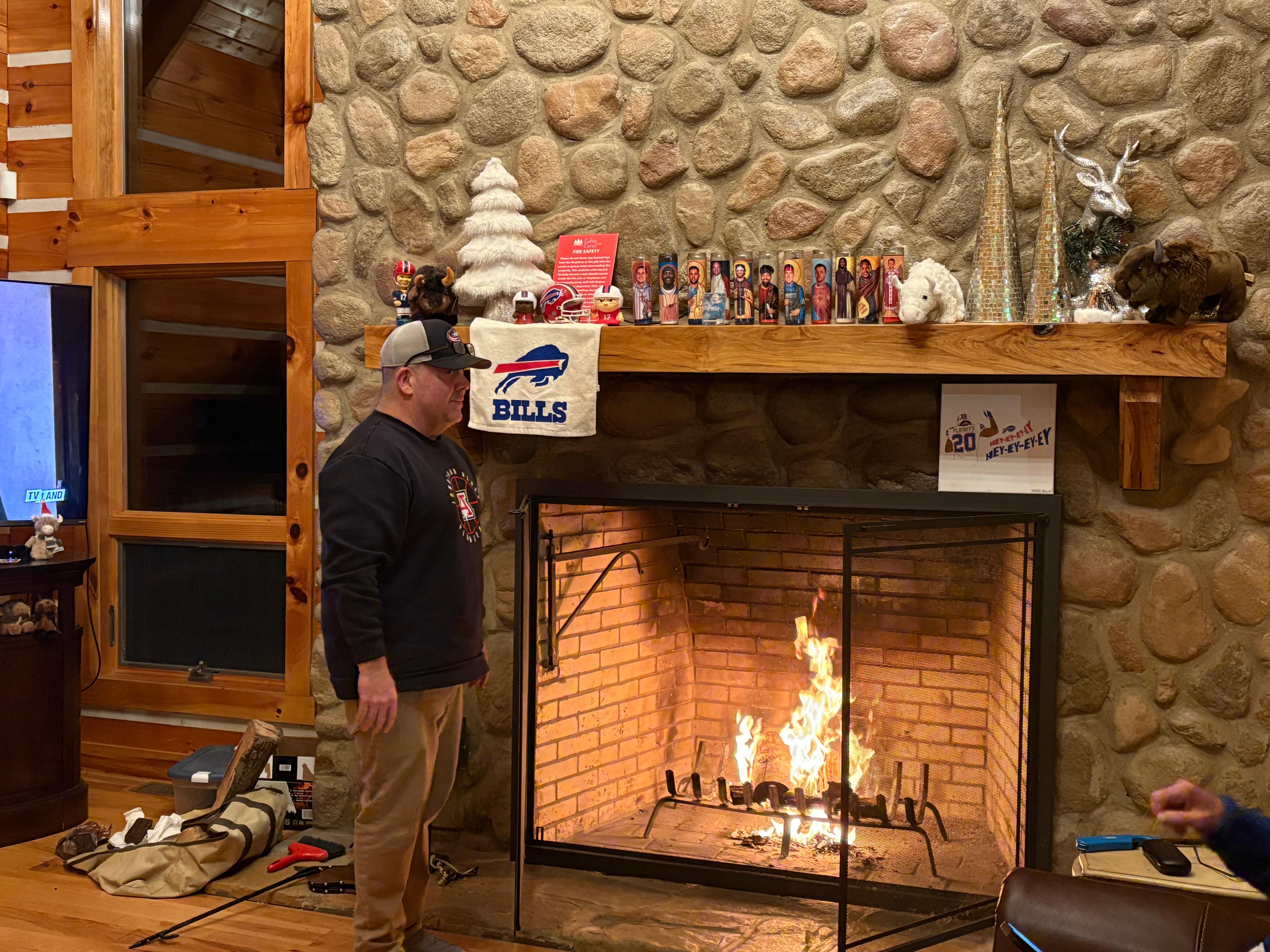 Plan your Hocking Hills getaway at Timber Ranch. This beautiful hand hewn log home offers plenty of seclusion with wooded nature views on 43 acres of property including a catch and release pond. Bring your fishing poles and your pet! Pet friendly with 3 private bedrooms plus sleeping loft and 3.5 baths. Comfortably accommodates up to 12 guests. Less than 5 miles from Route 33 and downtown Logan. Centrally located to the state parks and local area attractions. First floor master suite with King size bed, en-suite bath with soaking tub, and access to the screened in porch to enjoy your morning coffee with wooded and pond views. The loft bedroom is perfect for the family with two sets of twin over twin bunks and a children's play area. The finished lower level offers two additional bedrooms each with a Queen and twin bed. First and second floors have large stone wood-burning fireplaces. Enjoy the well equipped kitchen with JennAir appliances to prepare your meals. Relax after hiking with a soak in the private hot tub with outdoor patio seating. Timber Ranch offers complimentary WiFi and three flat screens with Roku in the great room, finished lower level, and Master bedroom. This is a restful retreat for friends and families to enjoy in the Heart of the Hocking Hills.