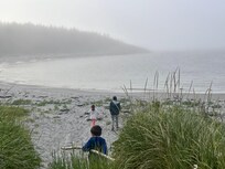 Some people are naturally drawn to islands, and they bother with them because it removes you from the way that the automobile and roads and commerce define physical space and your agenda. While Matinicus has a few cars and some roads, many of which are more jeep trails than roads, it's a walking island, mainly. There are many remote beaches only accessible by foot, and rarely visited, unless you go see and comb the beaches there. Most people at Matinicus work harvesting lobster, a hard labor which begins before dawn, so that by 5:00 p.m. the island quiets down, and by dark, the day has ended. There is something comforting about being set up with your family group next to the ocean as this occurs, and the sense of closeness, remove, and privacy is something that you can't quite achieve on the mainland. Matinicus' sand beaches are nearly unique in rocky Maine, and the camp location right on the ocean is prime, the real essence of the experience, and why it can be successful, is the pleasure of being alone with your group with the vast ocean in front of you and little to interfere with your family plans. So visitors get to spend more and better time together.